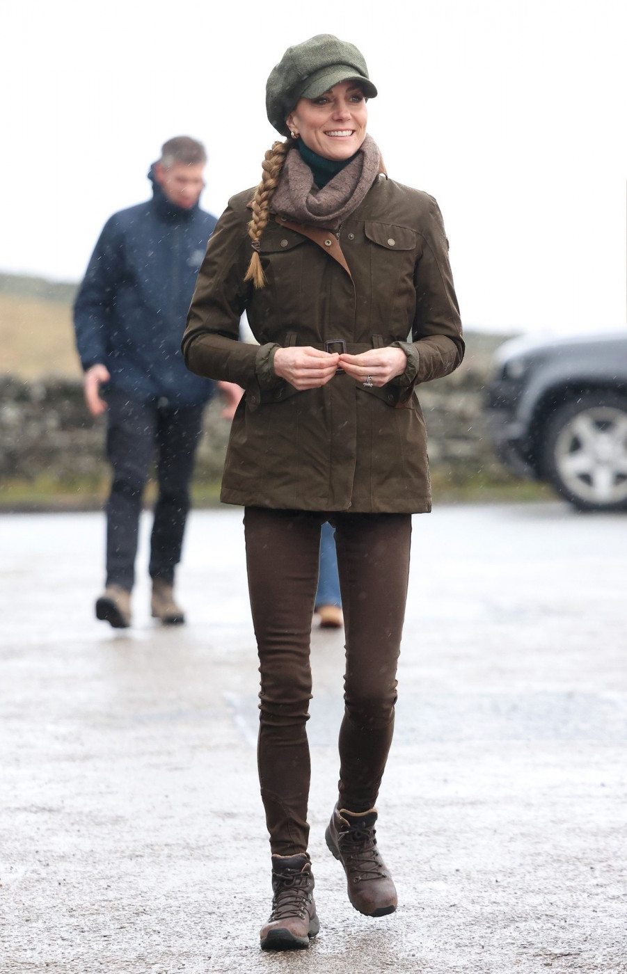 Supruga princa Vilijama svoju vitku figuru istakla je efektnom sportskom jaknom sa kaišem u vojničkom stilu, koju je uparila sa udobnim ravnim gležnjačama namenjenim boravku u prirodi, kao i pripijenim skini pantalonama u istom tonu.