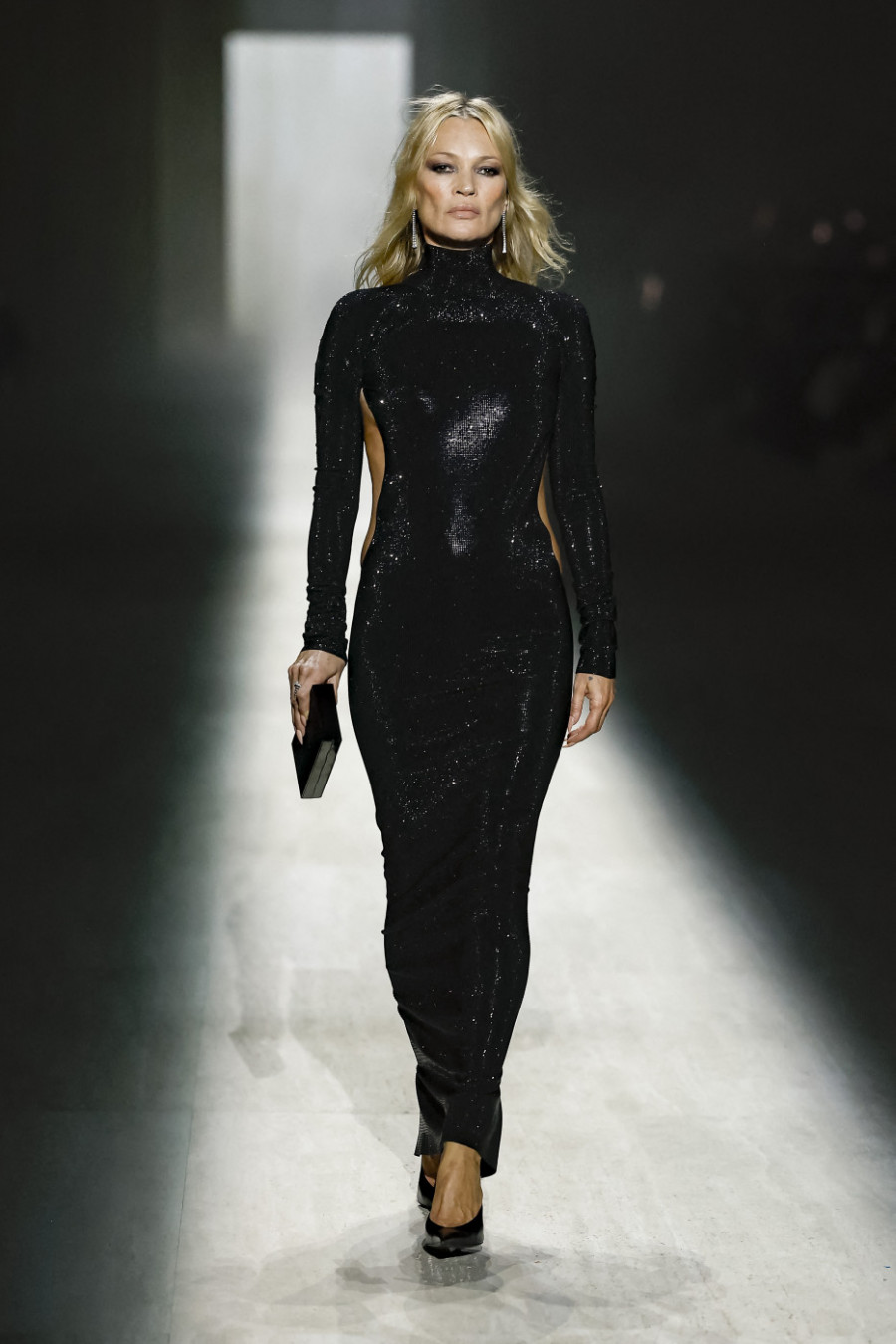 Koža, čipka i krzno dominirali su pistom, uz crnu kao osnovu, isprekidanu tonovima bordo i zlatne. Povratak Kejt Mos nije bio tek nostalgični trenutak - bio je to podsetnik da prava modna harizma ne zastareva, već se samo transformiše.