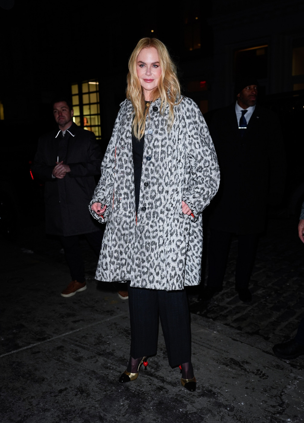 Nikol Kidman (58) nedavno se u Njujorku pojavila u monohromatskom crnom izdanju brenda "Khaite" -strukirana kožna jakna naglašenih ramena, duga crna suknja, prozirne čarape i špic salonke činile su savršeno izbalansiranu, minimalističku celinu. Ipak, pravi modni preokret dogodio se onog trenutka kada je preko svega prebacila oversized leopard kaput. U sekundi je modna kombinacija kombinacija od stroge i svedene postala upečatljiva, ali bez gubitka elegancije i sofisticiranosti.