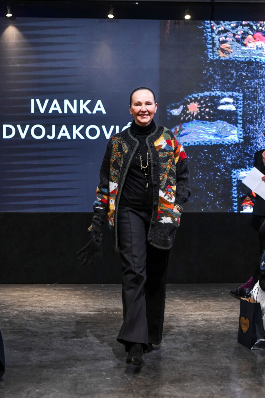 Poseban, duboko emotivan segment večeri bio je posvećen upravo Dobrili Smiljanić, koja je tokom priprema za ovaj događaj preminula, ostavivši neizbrisiv trag u istoriji domaće mode. U znak sećanja, njene kreacije nosile su njene omiljene manekenke, zvezde jugoslovenske modne scene: Aleksandra Kosanović Strižak, Irena Mišović, Ivanka Dvojaković i Ljiljana Erić. Njihov izlazak na pistu bio je jedan od najupečatljivijih trenutaka večeri, ispraćen snažnim emocijama i dugotrajnim aplauzom. U nastavku ovog segmenta predstavljena je najnovija kolekcija brenda Sirogojno, autora Georga Stylera, koji, sudeći po izuzetnim reakcijama publike i medija, uspešno i dostojanstveno nastavlja kreativno nasleđe koje je postavila Dobrila Smiljanić.