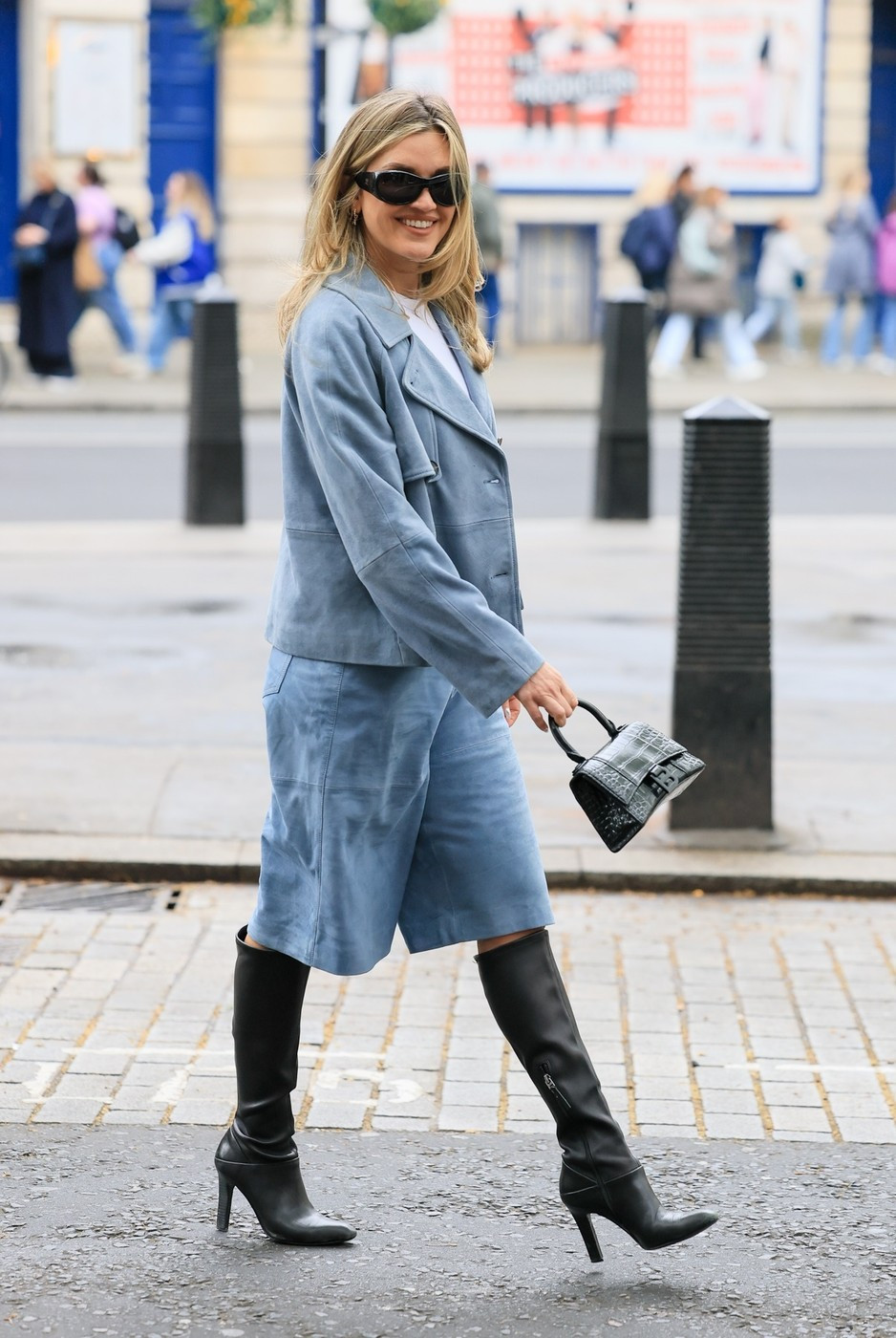 Iako smo navikli da poznata voditeljka bira elegantnije varijante, sudeći po fotografijama, Ešli Roberts, prilikom jednog javnog pojavljivanja, obukla je široku kombinaciju pomalo različitih boja džinsa, koju je podigla na viši nivo skupocenom torbom i dubokim, uskim čizmama.