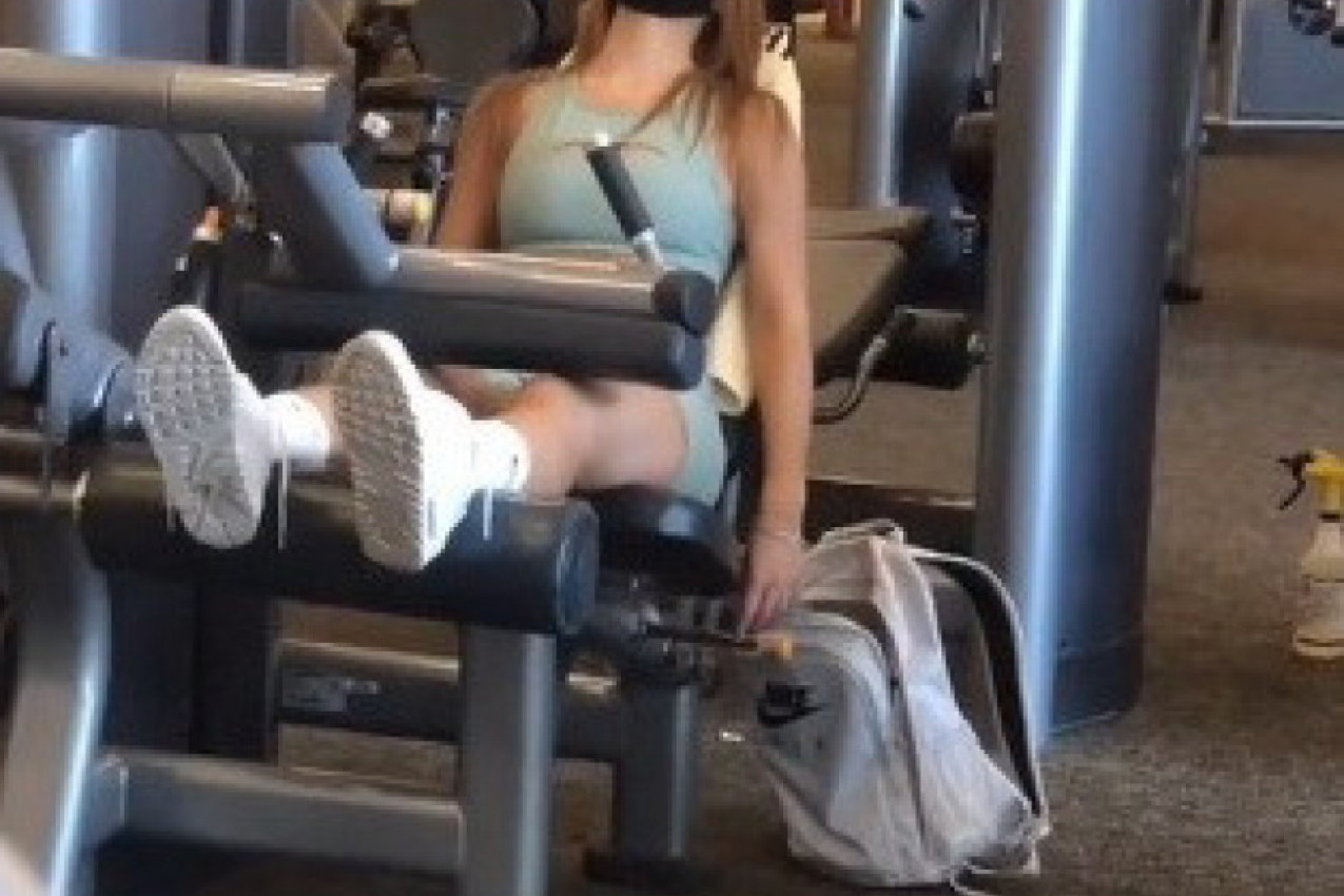 Izgleda prilično umorno i iscrpljeno dok sedi na jednoj spravi za oblikovanje i jačanje nogu, dok je na drugoj spravi za gluteus potpuno opružena s rukama koje vise sa strane. Inače je obučena u atraktivnu odeću za trening, a kako pokazalo, zaista niko ne obraća pažnju na nju.