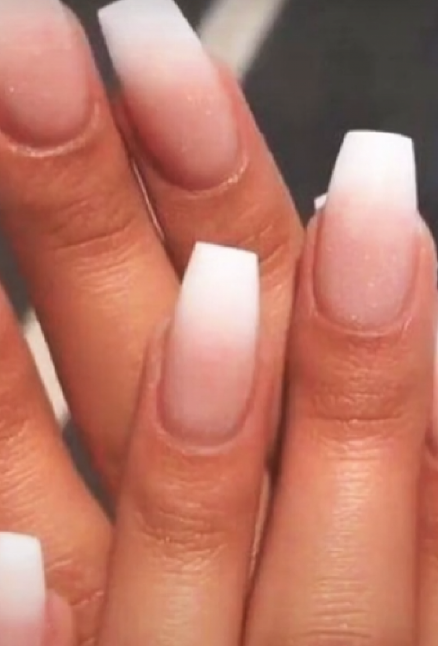 Ešli je samo jedna od devojaka koja je imala prevelika očekivanja kada je izbor manikirke i dezena noktiju u pitanju. Ona se tako odlučila za ombre nokte i na početku njenog TikTok snimka imamo priliku da vidimo i kakav je ona manikir želela. Nokti na fotografiji su dugi i kockasti, a odlikuje ih neutralna boja laka u nijansi kože, preko koje je nanesena bela. Preko celih noktiju na kraju su dodate šljokice, a celokupan utisak je da je u pitanju uredan ombre manikir.