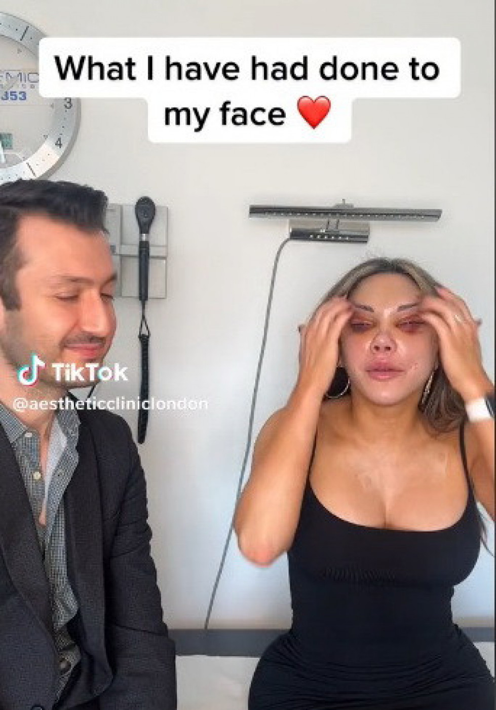 Devojka na snimku bila u postoperativnom periodu sa sa podlivima i modricama na licu i očima, pokazavši kakve su trenutne posledice ovakvih zahvata i šta je doktor radio na njenom licu kako bi razrešila misteriju svih koji su bili šokirani njenim izgledom.