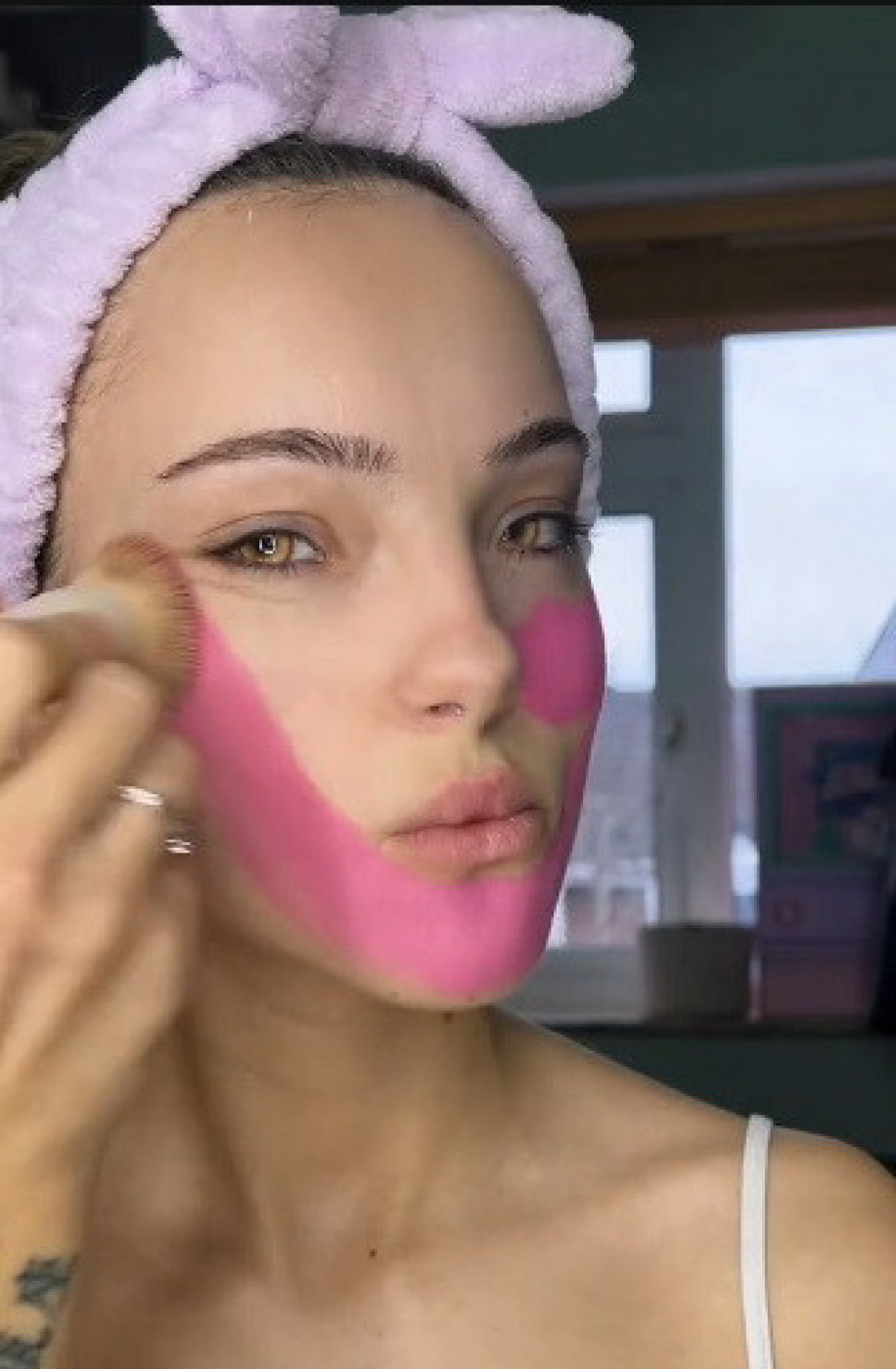 Na prirodno lepo lice ona je krenula strpljivo da nanosi podlogu i šminku korak po korak, te da se pretvara u izmišljeni lik iz filmova. Lice je našminkala roze bojom i po njemu je iscrtala sve šare koje su karakteristične za avatar, a onda je stavila periku plavuše upotpunivši na taj način svoj lik. Sočiva koje je stavila dodatno su dale pečat sveukupnom izgledu.