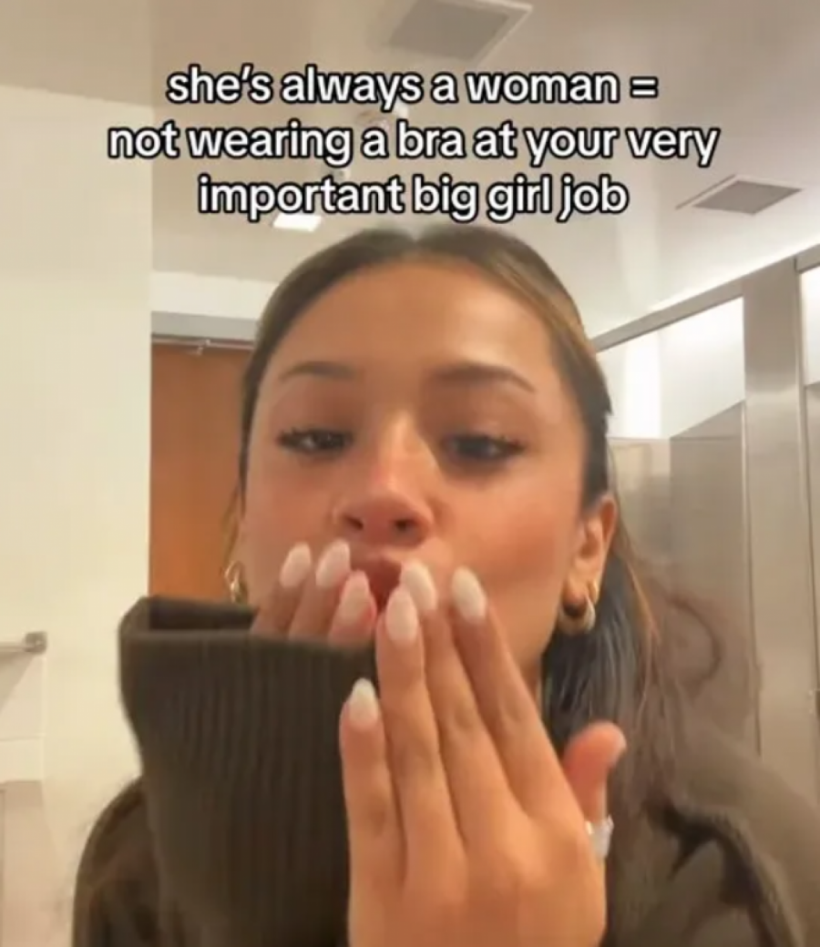 Tiktokerka ima veće grudi, pa je prinuđena da bira brushaltere sa dodatnim ojačanjem. Međutim, prednost je dala udobnosti, te je odlučila da se oslobodi donjeg veša, što je potez koji je iznenadio mnoge, posebno na njenom radnom mestu.