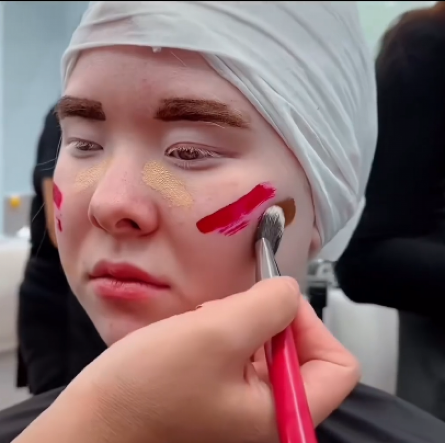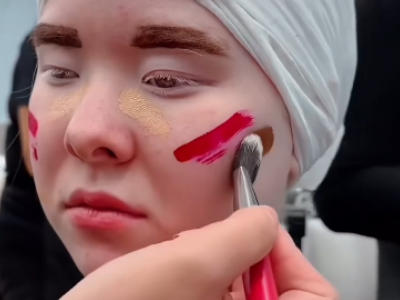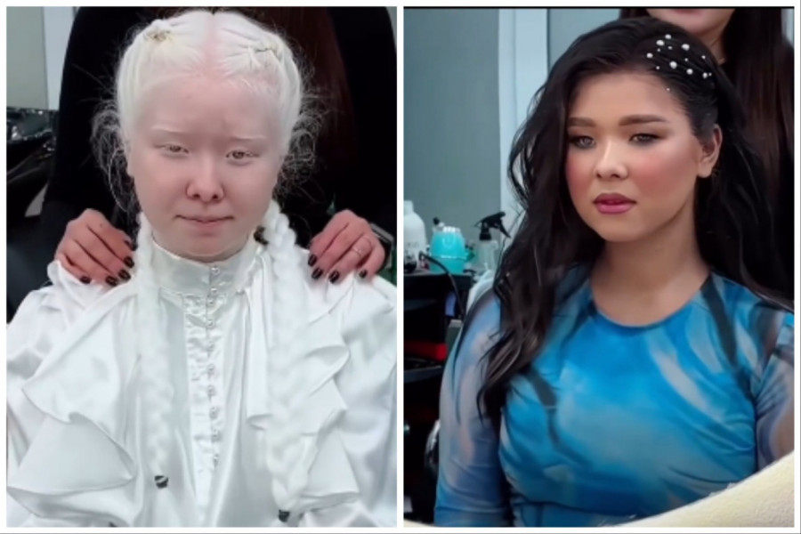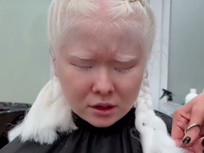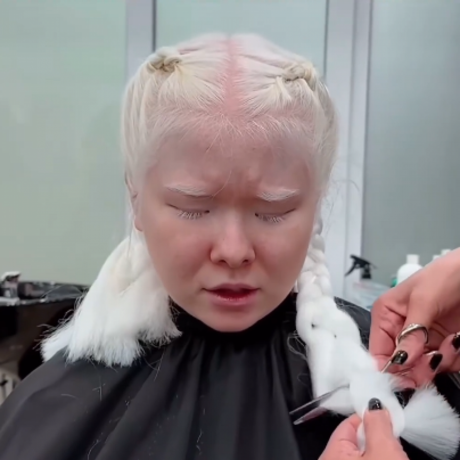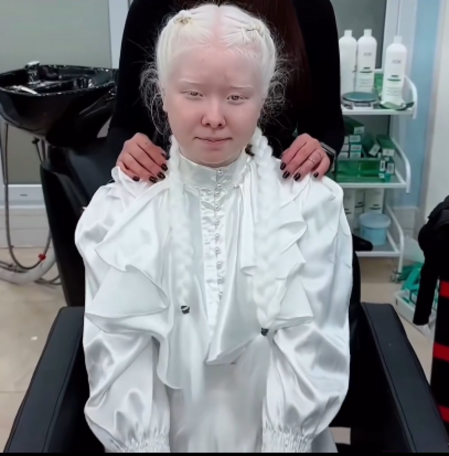 Ona ne samo što ima porcelanski beo ten, izrazito belu kosu, trepavice i obrve, već i svetloplave oči, a bila je obučena u belo što je dodatno isticalo njenu belu kosu. Vešte ruke frizera najpre su njenu belu kosu ofarbali u srebrnastu koja je moderna poslednjih nekoliko godina. Za potrebe ove transformacije su joj kosu čak poprskali tamnim sprejom, tako da na kraju transformacije postala crnka.