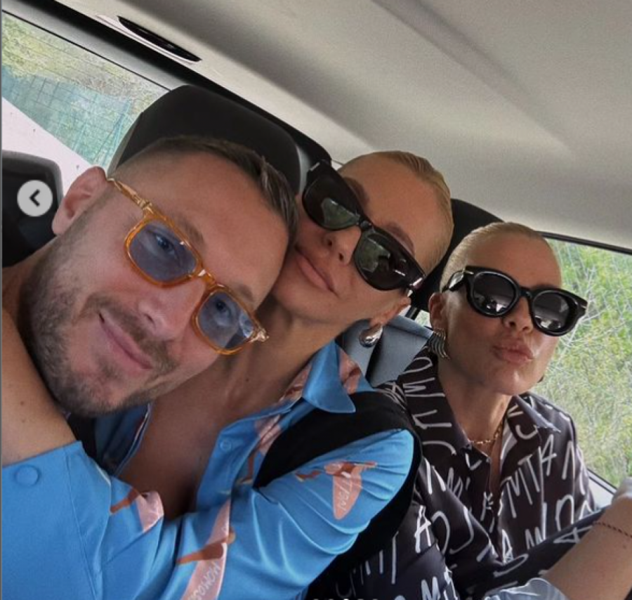 Na narednoj fotografiji su sestre Bekvalac uslikale selfi sa jednim muškarcem koga je Nataša prisno grlila. U pitanju je modni dizajner Mihailo Anušić, kom se Nata obratila sledećim rečima.