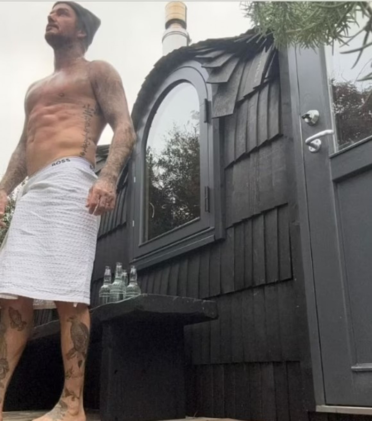Bivši fudbaler Dejvid Bekam je na svojim Instagram pričama pokazao kako izgleda jedan njegov dan kada želi da se opusti, a pravio je selfije bez majice u svojoj bašti. On se svukao do donjeg veša sa peškirom vezanim oko struka. Pokazao je svoje zgodno telo i tetovaže.