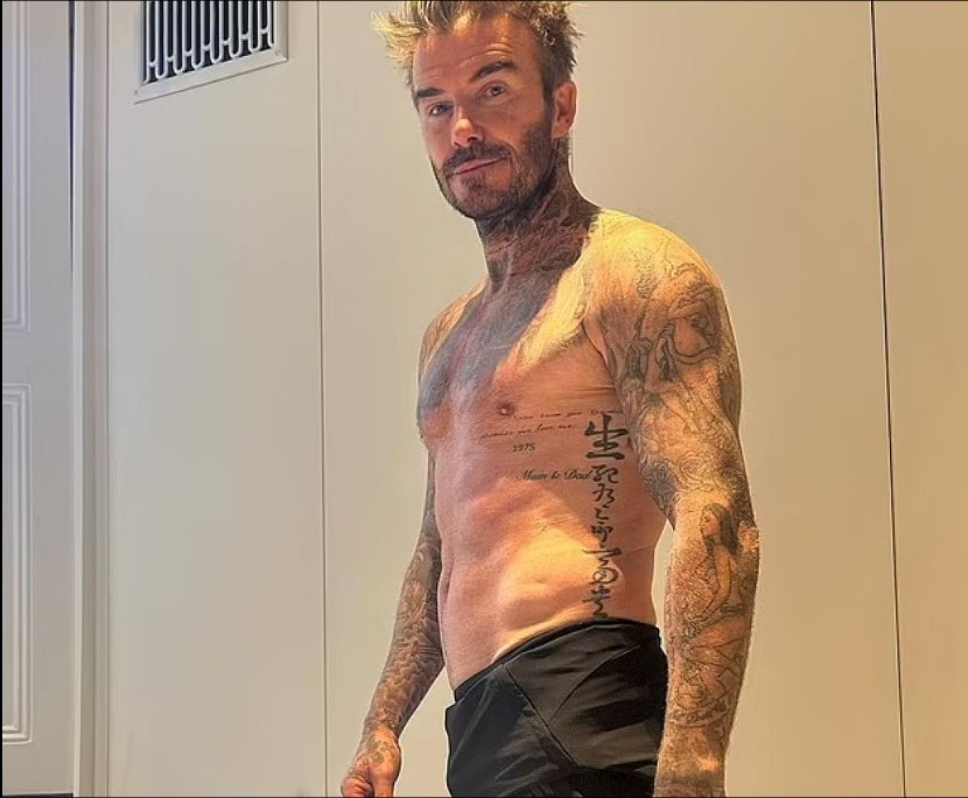 Takođe je uslikao fotografiju na kojoj su njegovi psi. Sportska zvezda je poznata po svojoj ljubavi prema treniranju, a može da se pohvali sa najmanje 88 tetovaža. Inače, većinu tetovaža koje ima posvetio joj svojoj supruzi Viktoriji Bekam i njihovoj deci, Bruklinu, Romeu, Kruzu i Harper.