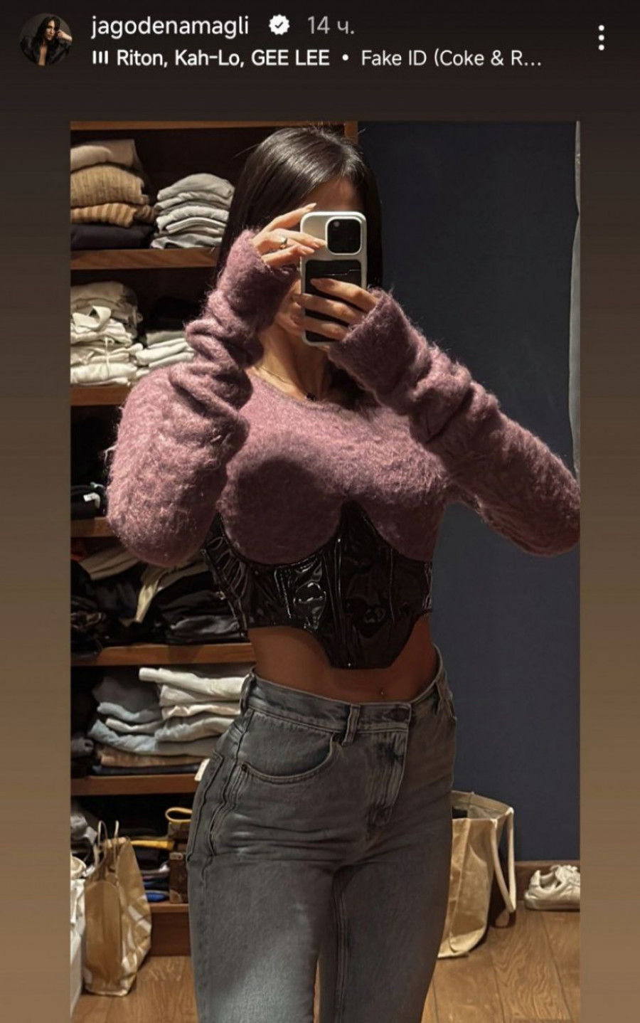 Glumica je na Instagramu objavila serijal fotografija, koje su izazavle salvu pohvala. Prilikom izlaska opredelila se za neobičnu i sasvim unikatnu odevnu kombinaciju. Ponela je izbledele farmerke koje su joj savršeno pristajale, dok je gore imala krop-džemper u ljubičastoj boji.