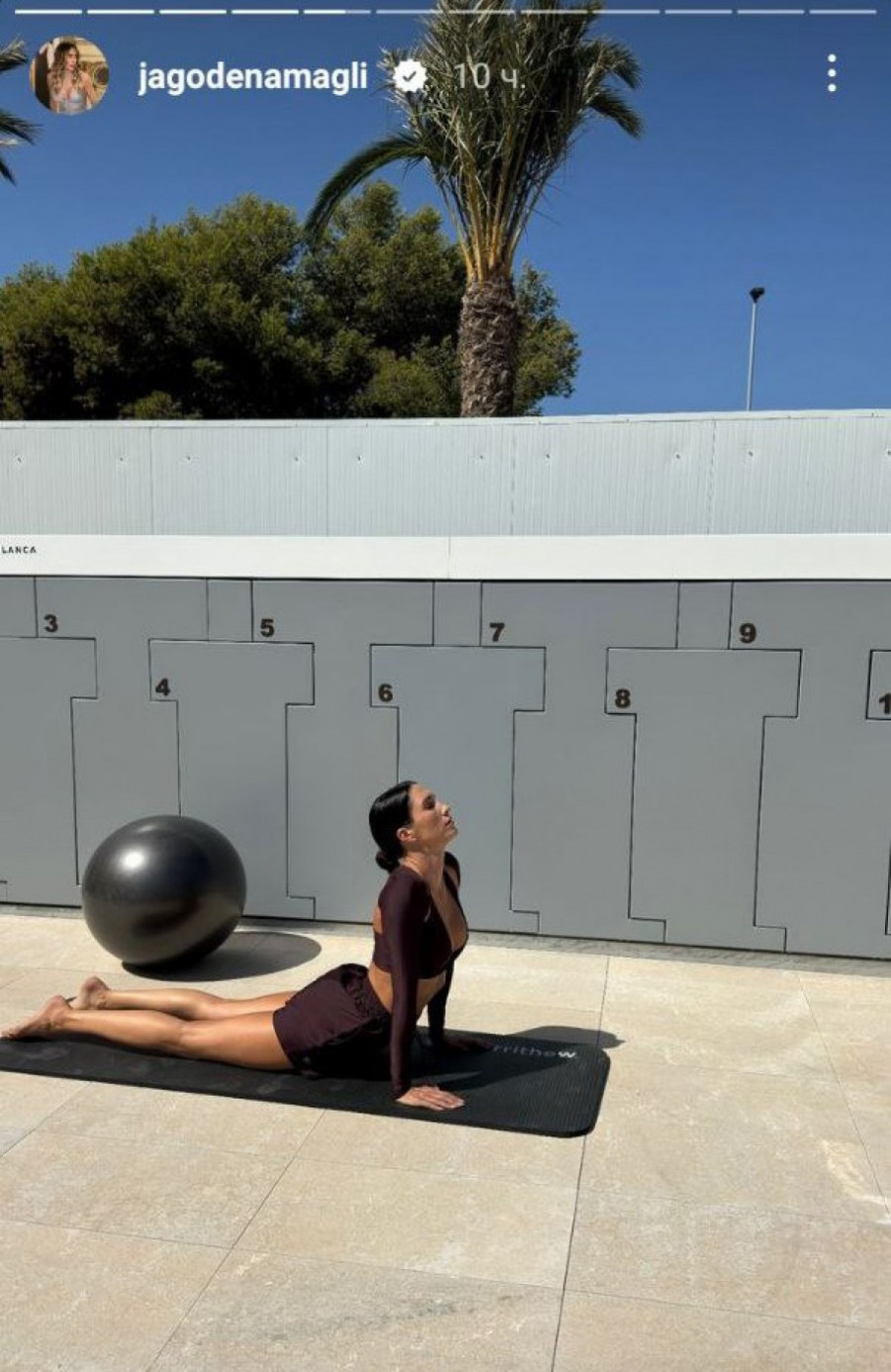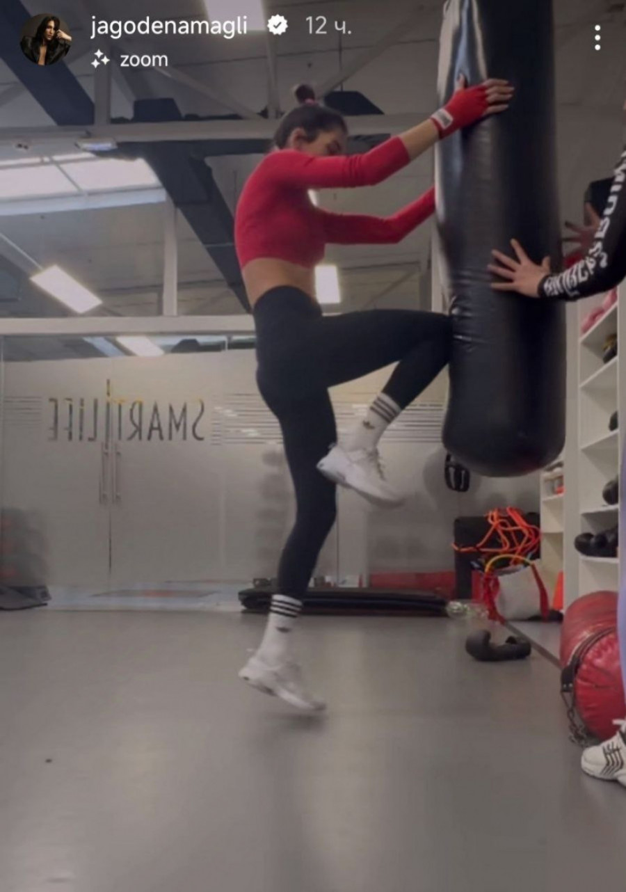 Glumica redovno trenira, usred leta, kao i zime. Ovog puta objavila je snimak sa treninga boksa, na kome se jasno vidi kako udara nogama u vreću za boks. Prilikom treninga primetno je da je imala helanke i majicu koja je otrivala njen ravan stomak u trbušnjacima.