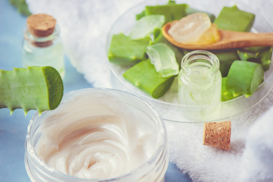 Presecite list aloja vere i pažljivo izvadite providni gel iz unutrašnjosti lista. Pomešajte ga s bademovim uljem dok ne dobijete glatku masu.