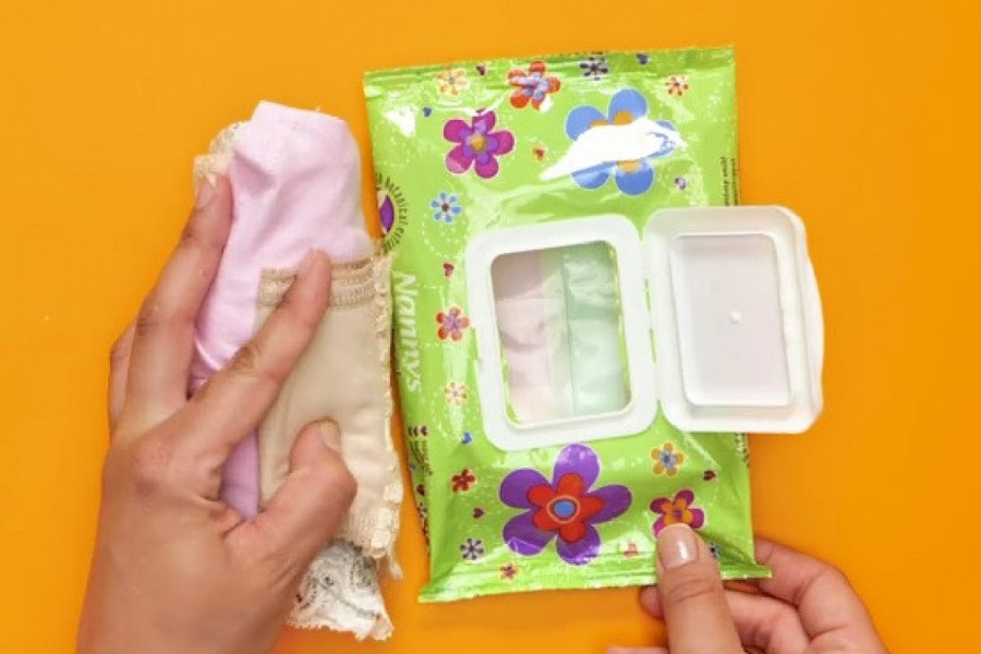 Tokom „onih dana“ donji veš se brže prlja te ga samim tim i češće menjamo. Prazno pakovanje vlažnih maramica za bebe nemojte bacati. Ostavite da se osuši na vazduhu i iskoristite ga pametno. Gaćice naslažite tako da se delimično preklapaju pa onda redom odozgo nadole sklopite prvo njihove stranice a onda ih umotajte u valjak. Ovaj paketić gurnite kroz otvor pakovanja vlažnih maramica. Zatvorite plastični poklopac i stavite u torbicu. Na ovaj način ćete rezervni par donjeg veša uvek imati pri ruci. A zgodno je i kao trik za putovanja.