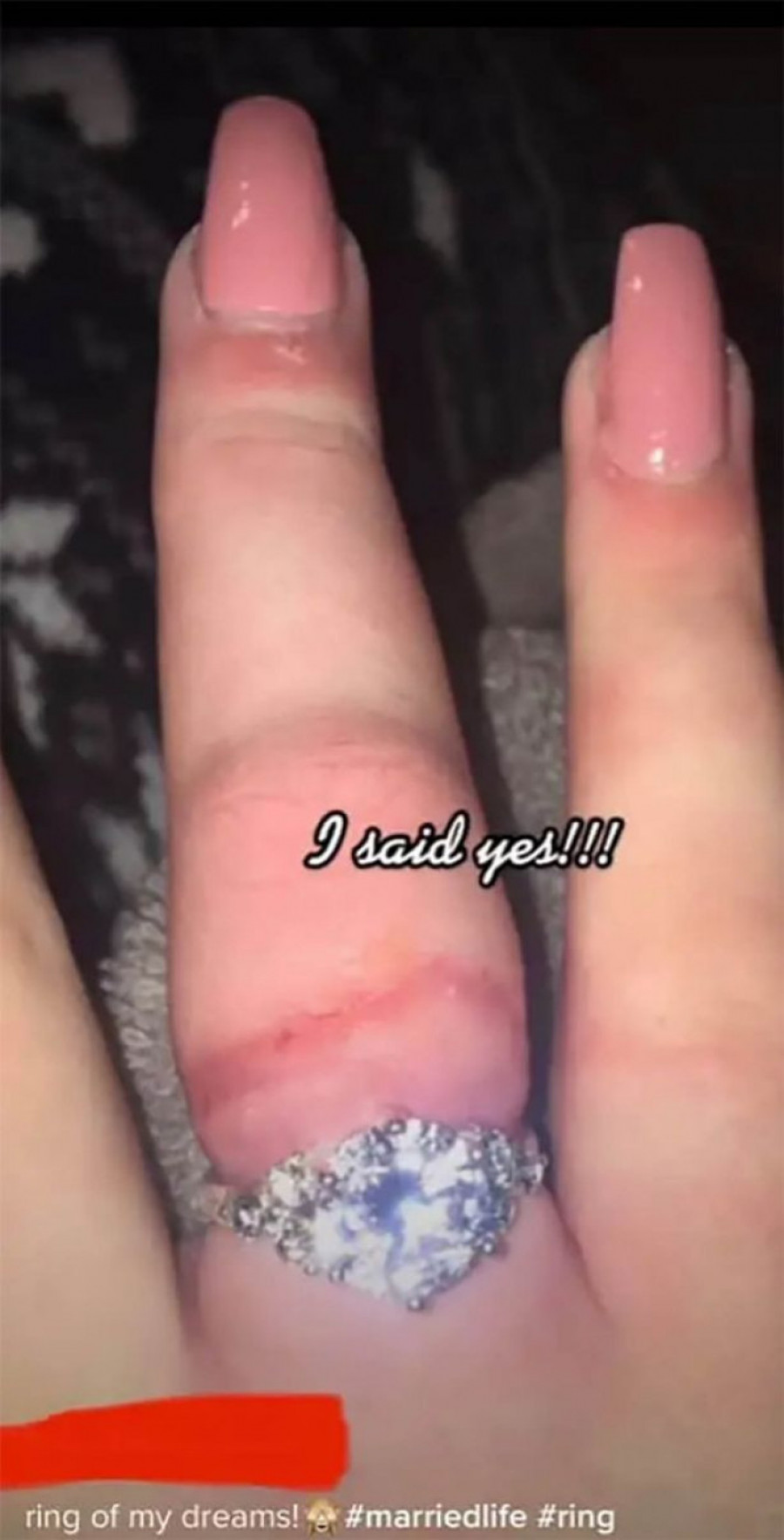 Međutim, umesto čestitiki i divljenja njenom dijamantskom prstenu, dobila je more komentara zabrinutih ljudi kojima je prizor povređenog prsta gotovo uznemirujuć.