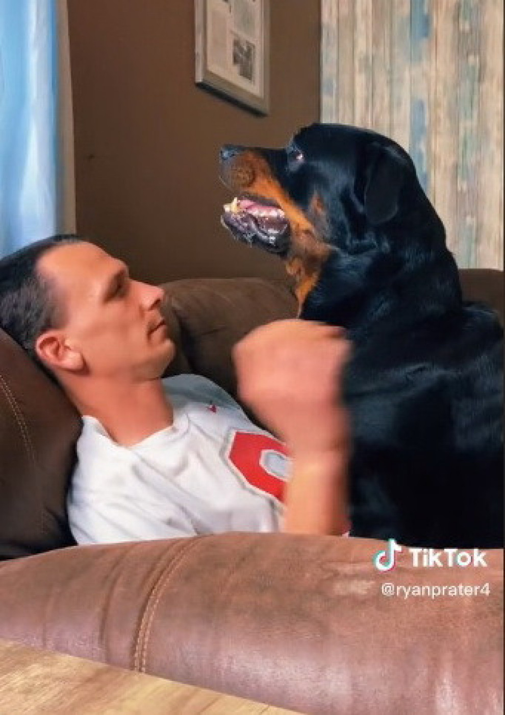 Kako nalaže higijena, red je došao na podrezivanje noktiju, a Tiktoker je pokazao da se odlično snalazi u tome i da ima dobro dresiranog psa jer je ljubimac stajao pored njega mirno mu pružajući šapu. Međutim, jednom reakcijom je otvoreno pokazivao da mu ta radnja nije baš omiljena. Naime, on je sve vreme kezio zube i na taj način negodovao, dok je vlasnik mirno radio svoj posao ne obazirući se na ponašanje psa. Ipak, u jednom trenutku kada je svom ljubimcu zatražio drugu šapu, on je počeo glasno da reži i da ga grebe. Situacija kao da se otgla kontroli pa je životinja rase rotvajler najednom skočila na vlasnika glasno režući i preteći. A onda je usledio šok.