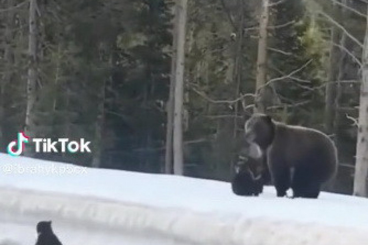 Medvedica u jednom trenutku nije videla svoje mladunče jer je bilo bliže putu. Nazirale su mu se šape na snegu kada je pokušavalo da se bezuspešno popne i pridruži majci i svojoj braći. Pošto je majka videla da ne uspeva, sišla je dole i dotrčala do automobila kako bi opomenula posetioce "da nastave svojim putem".