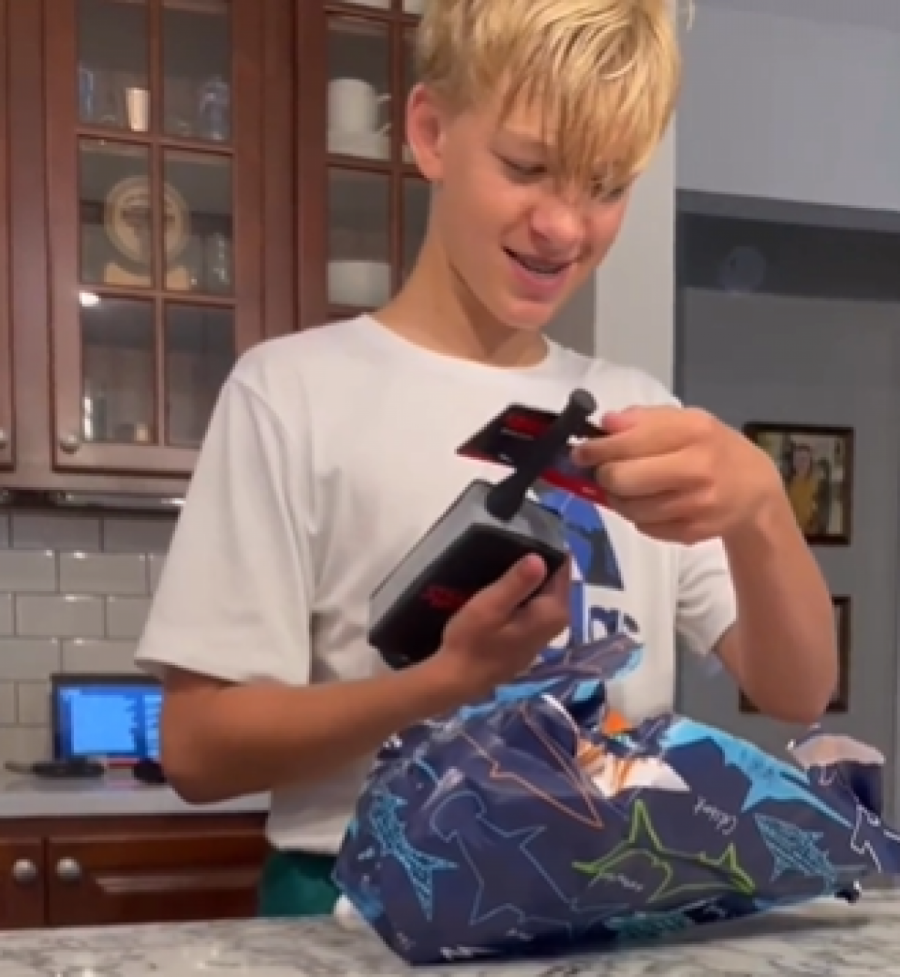 Jedan snimak postao je viralan i pregledan je više miliona puta, a samo na Instagramu je dobio 668.000 sviđanja i na hiljade reakcija. Video počinje dečakom koji za 12. rođendan dobija zapakovani poklon. On otvara polako i nailazi na čudne predmete. Tu su gumene igračke koje pište i mora da je prolazilo ovom dečaku kroz glavu zašto li su mu roditelji kupili igračke koje su namenje deci mlađeg uzrasta. Njegova mama pritom snima njegovu reakciju i oduševljeno mu objašnjava da su to igračke za psa.