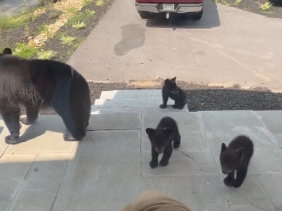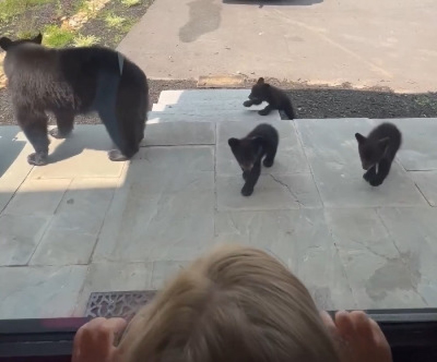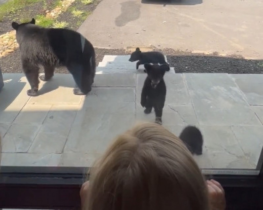 Snimak o kome priča ceo svet prikazuje članove porodice koji počinje ushićenom američkom porodicom koja ceolokupan prizor koji se odvija na metar ispred njih posmatra sa druge strane vrate. Na snimku se čak vidi potiljak jednog od mališana iz doma. Ispred njihove kuće u samom dvorištu i na metar od njih, odvija se nesvakidašnji prizor. Crna medvedica očigledno je izašla iz svog staništa i krenula da istražuje dvorište u kojem ova porodica živi, a to čak nije bilo sve, ona je u ovu istraživačku misiju povela i sva tri svoja mališana.