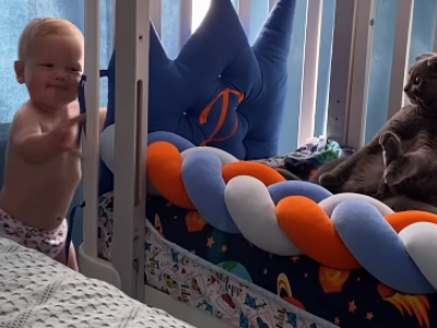 Mala deca posebno mališani oko godinu dana koji su praktično još uvek bebe umeju nehotice da malo jače zgnječe svoje kućne ljubimce pokazujući im svoju nesebičnu ljubav. Upravo jedan takav ljubimac tačnije nritanska kradkolaka mačka izgleda da je tu lekciju savladala pa u širokom luku zaobilazi svog malenog vlasnika, dečaka starg oko godinu dana.