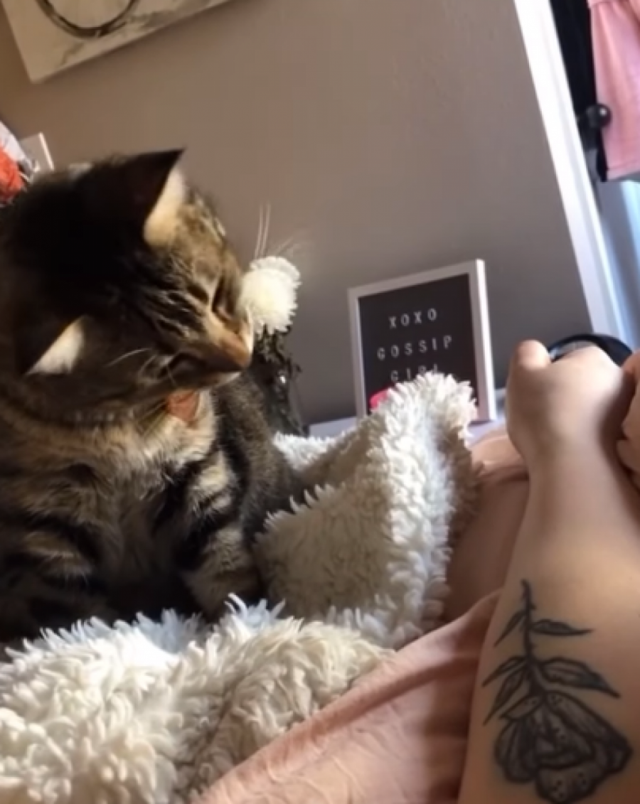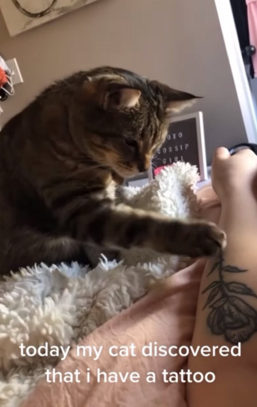 Mačke su po prirodi radoznale životinje, pa će mnoge od njih verovatno biti zainteresovane za bilo kakve promene na telu vlasnika. Tetovaže, kao vizuelna promena, mogu izazvati radoznalost kod mačaka koje će istraživati i dodirivati tetovirano područje. Upravo tako je reagovala mačka sa snimka koji je upravo zbog ovog kućnog ljubimca postao rado gledan.