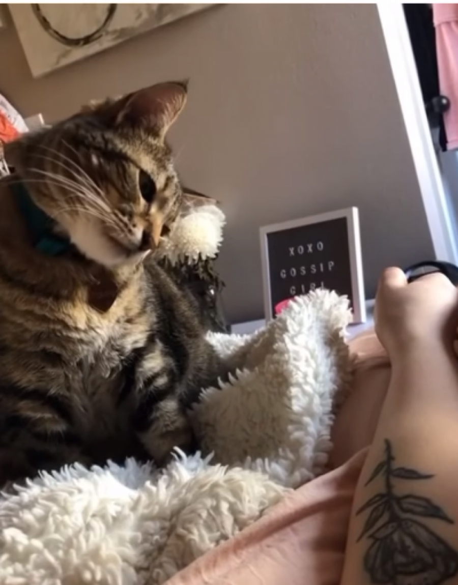 - Da li je ovo stvarno? Danas je moja mačka otkrila moju tetovažu - stoji u opisu snimka.