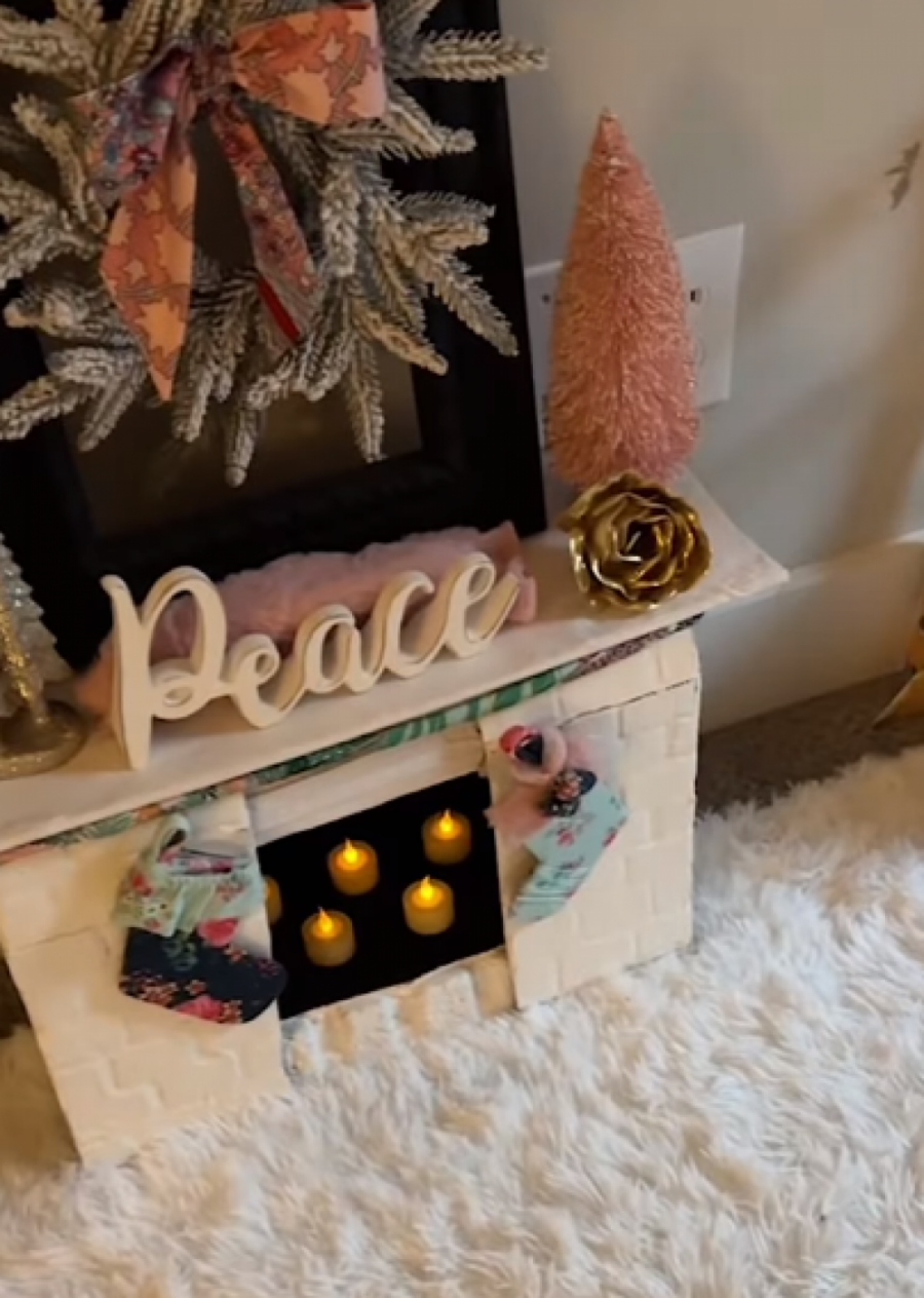 Najinteresantniji detalj je u levom kutku sobe koji je u vidu male jelke koja je bogato ukrašna. S druge strane kreveta nalazi se komodica ili tzv. noćni stočić na kome se nalazi lampa i figurice u obliku mačke. Tu je i čupavi luksuzni tepih, dok je sa leve strane ukrasna polica i maleni kamin u kome simbolično stoje tri sveće i na njemu velikim slovima piše Mir (Peace). Tu je i komoda za navodno presvlačenje, kao i garnitura od skaja sa komodom.