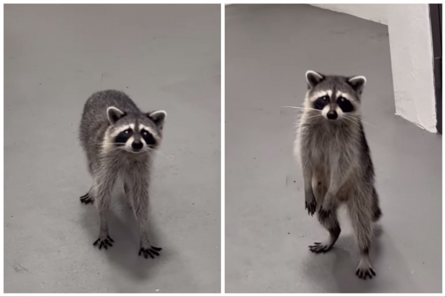 Na snimku se vidi rakun koji je samouvereno razbucao kesu i pokupio hranu. U jednom trenutku se podigao na zadnje noge bez ikakvog straha što je uhvaćen na delu u krađi hrane. Nešto dalje na stepenicima vidi se drugi rakun, koji se sramežljivo krije kako bi prvim znacima upozorenja pobegao.