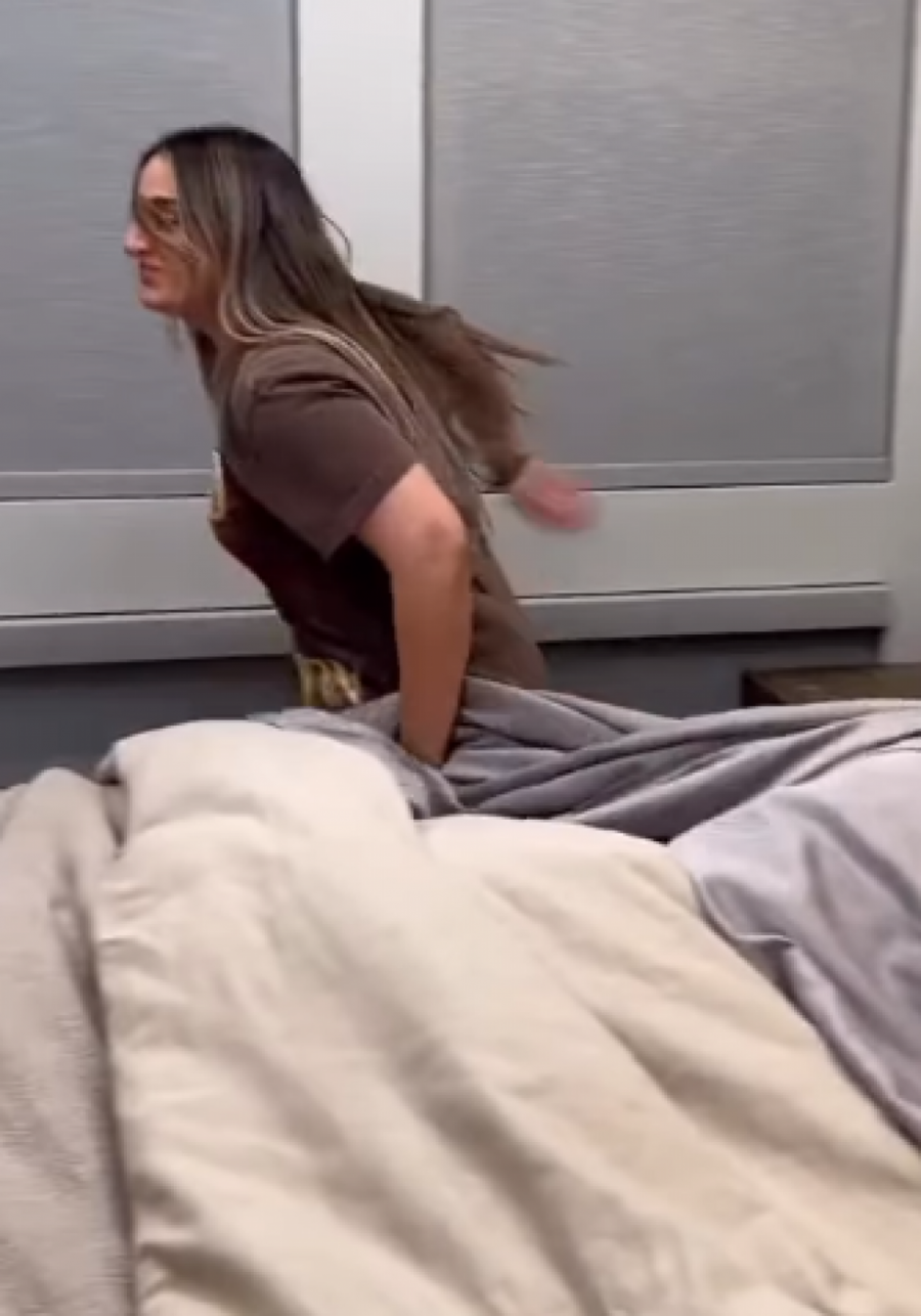Mnogi parovi koji spavaju zajedno u krevetu imaju povremene probleme. Hrkanje, neodostatak prostora, nekome je pretoplo, drugom prehladno su samo neki od njih. Međutim, ova žena naišla je na netipičan prizor kada je došla u krevet. Ona krajnje iscrpljeno pokušava da legne i shvata da nema dovoljno prostora. Potom se besno obraća suprugu.