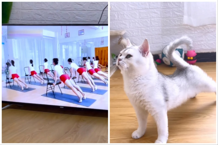 Jedna mačka je postala senzacija na društvenim mrežama nakon što je snimljena kako oponaša vežbe koje su izvodile devojke na televiziji. Snimak je ubrzo postao veoma rado gledan i izazvao je lavinu reakcija na Internetu. Mačka je prvo posmatrala vežbe sa vidnim interesovanjem, da bi zatim pokušala da ih oponaša, dok je njen neobičan potez izazvao oduševljenje kod mnogih korisnika društvenih mreža. Snimak je brzo postao hit, sa više od 260.000 sviđanja samo na Instagramu, a komentari hvale za nadarenost ove mačke su se nizali.