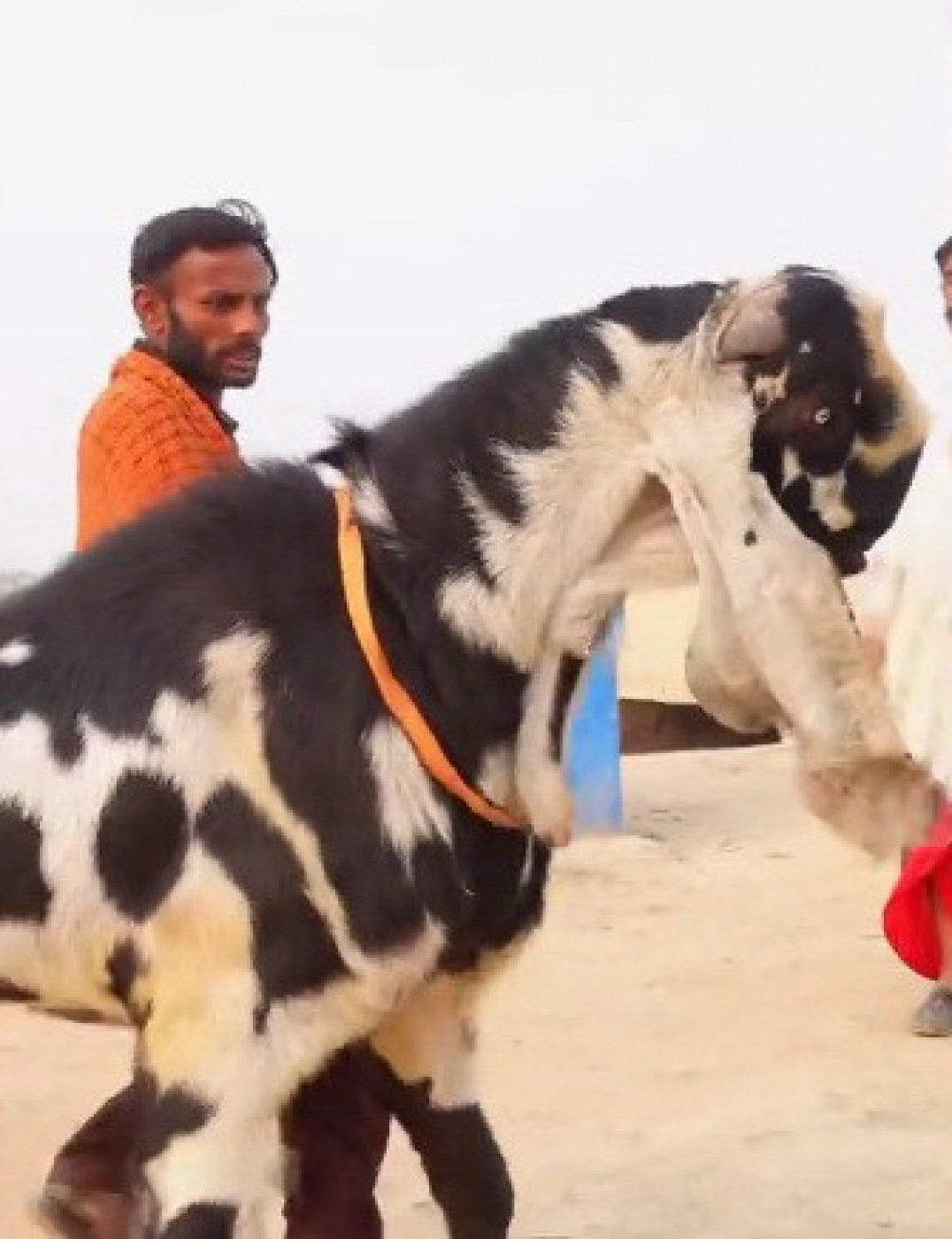 Životinja ima crno-belo krzno, ogromne uši koje vise, kratko lice, izbačenu vilicu i nabore na licu koji je čine grotesknom i pomalo zastrašujućom. Po veličini i izgledu podseća na kravu iako je jasno da nije u pitanju krava. Na snimku se vidi beduin koji je pokušavao da je ukroti, ali se životinja otimala.