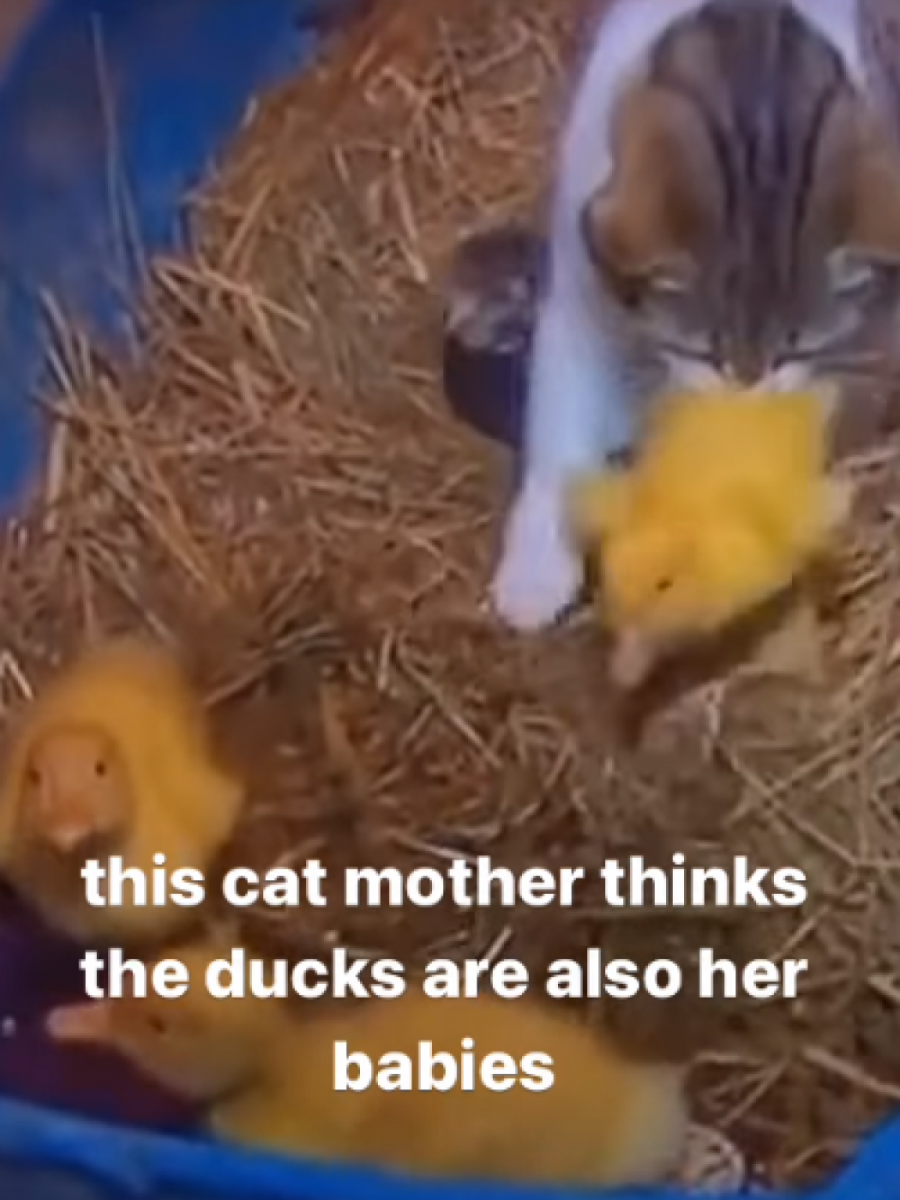 Nakon što se okote mačake imaju izražen majčinski instikt koji ih tera da pored svojih mačića brinu i o drugim slabim i malim stvorenjima. Međutim, kako su po prirodi mesožderi i lovci vrlo je neobično kad mačka usvoji piliće ili pačiće. Kako objašnjavaju veterinari, to može biti posledica nekoliko faktora. Sa izraženim majčinskim instiktom mama mačka može da oseti potrebu potrebu da zaštite mldunce drugih životinjskih vrsta i da o njima brine kao da su njeni mačići.