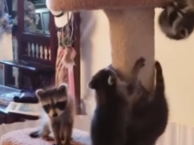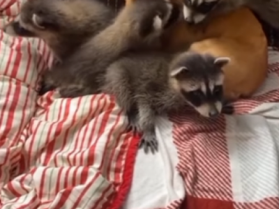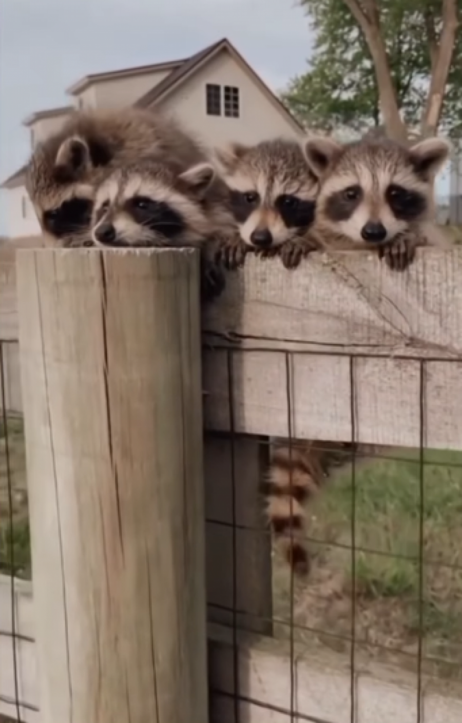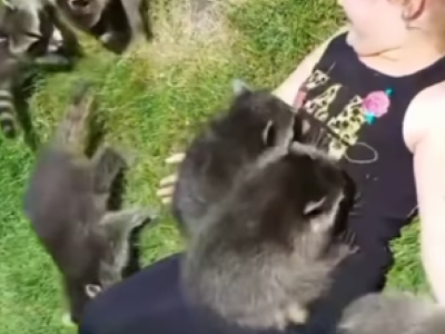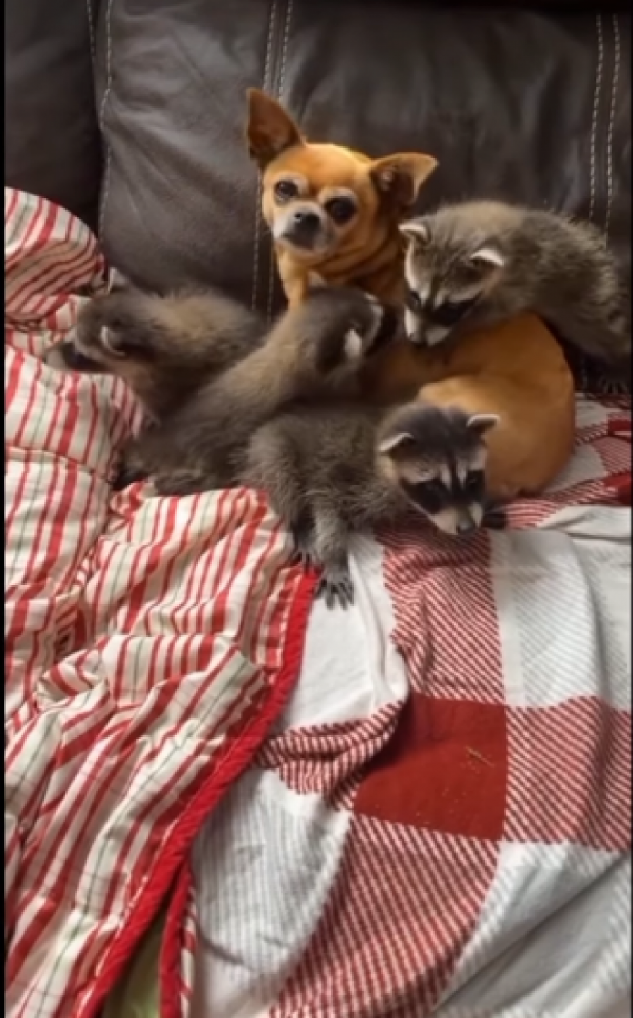 Porodica nije želela da ih prepusti neizvesnoj sudbini, koja za bebe rakune, koji još nisu bili ni progledali, ne bi bila blagonaklona. Zato su svi ukućani prionuli na hranjenje i negovanje čak sedam mladunaca. Kasniji snimci pokazuju koliko su oni lepo napredovali i porasli, a očigledno su ostali kućni ljubimci. Tako su im postavili grebalice za mačke unutar kuće, a napravili su im i pravi poligon. Čak ih je i njihov pas, rase čivava, prihvatio.