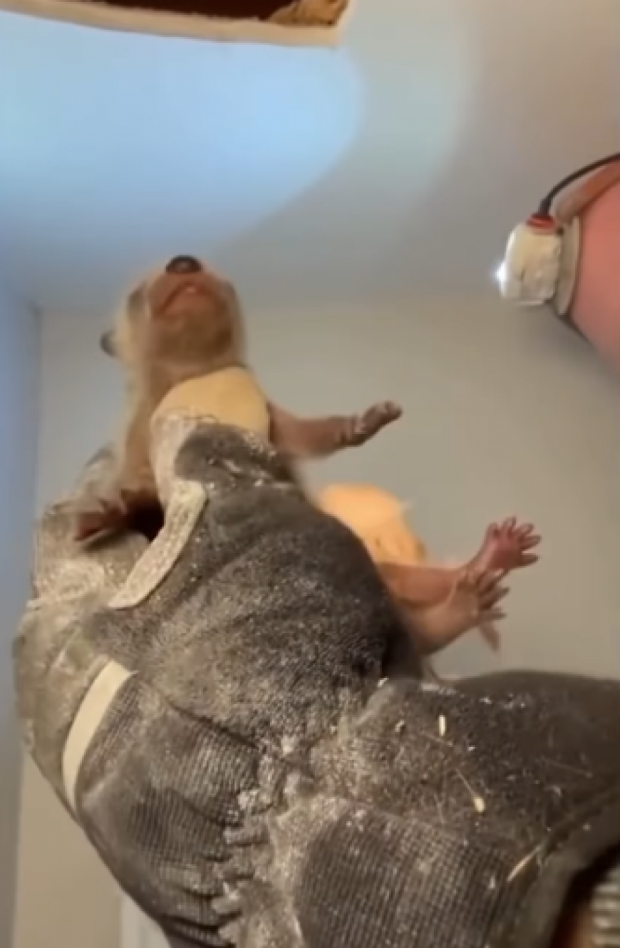 Budući da su čuli neko čudno komešanje, porodica je rešila da proveri šta se to dešava unutar njihovog krova. Otac je čak izbušio rupu koja je vodila do letvi u tavanici, a pošto je skinuo izolaciju, napipao je malena stvorenja koja su tamo bila ostavljena. Tek kada ih je spustio primetio je da su to bili maleni rakuni. Majka im je najverovatnije nastradala, budući da ih je ostavila same.