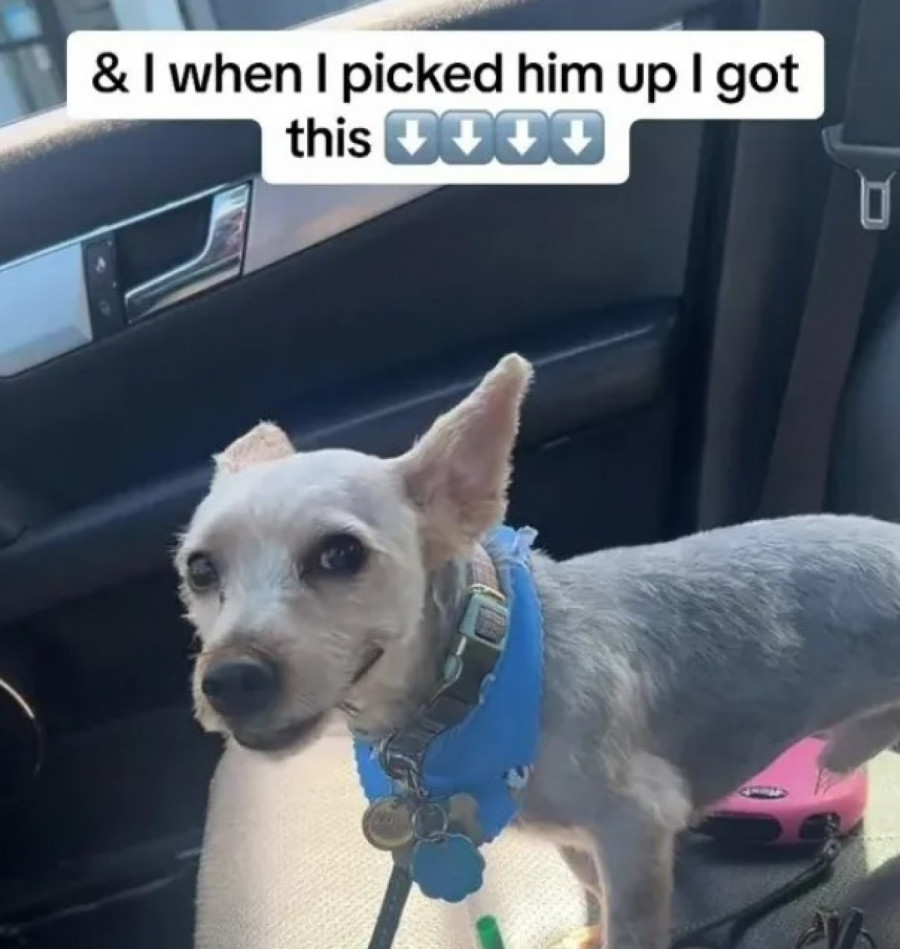 Njen psić je bio potpuno neprepoznatljiv nakon što je njegova nekada dugačka, blago narandžasta dlaka, dobila drastičan trim. Sada, ne samo da je pas obrijan, već mu je i lice "skraćeno".