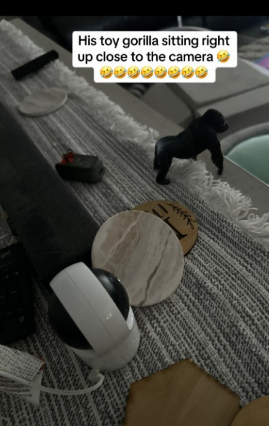 Kada je ušla u sobu, otkrila je da je u pitanju zapravo samo igračka gorila, koju je njen sin ostavio blizu bebi kamere.