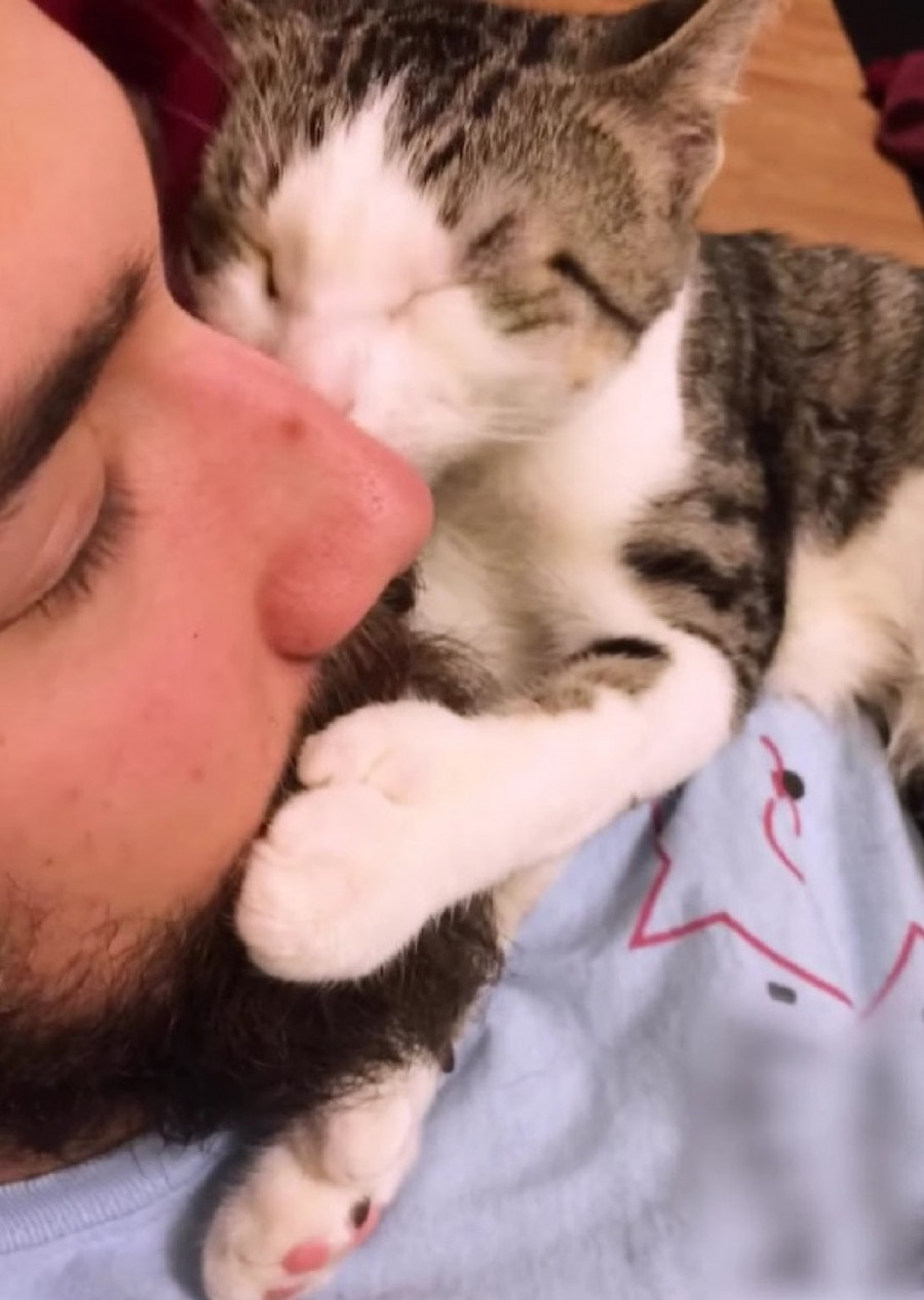 Naime, ova sivo-bela maca živi sa svojom vlasnicom i njenim partnerom i zaljubljena je u bradu svog vlasnika. Ima običaj da mu legne na grudi i da mu liže i češka bradu, kao da je hipnotisana. Njene mekane šapice obožavaju da dodiruju dlake na bradi i čini se da joj je to omiljeno mesto na svetu.