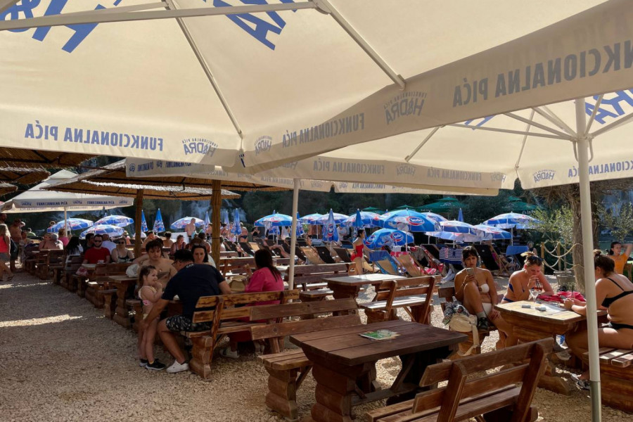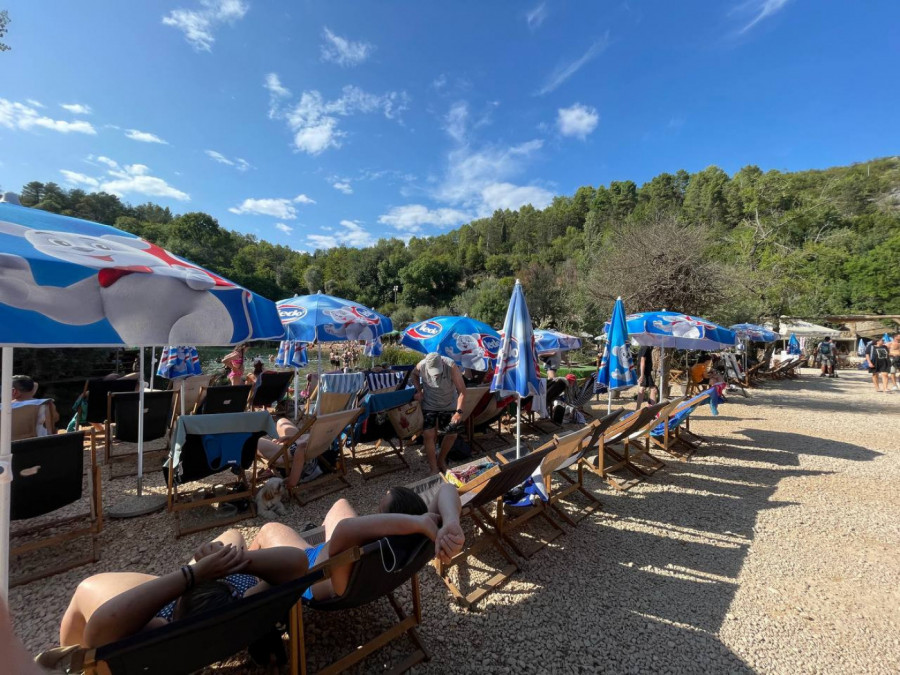 Sa vrha "stepenica" na kojima postoji vidikovac, već nam je bilo jasno – više je ležaljki nego prostora oko njih. A, kada smo se spustili dole, na prvu loptu smo prebrojali pet različitih lokala. "Plaža" koju sam viđala na fotografijama nije ni postojala od gooomile ležaljki koje čak nisu ni prave ležaljke nego one platnene stolice za plažu. Koštaju 5 e, a ukoliko hoćete i suncobran, onda je to zadovoljstvo ukupno 10 evra.