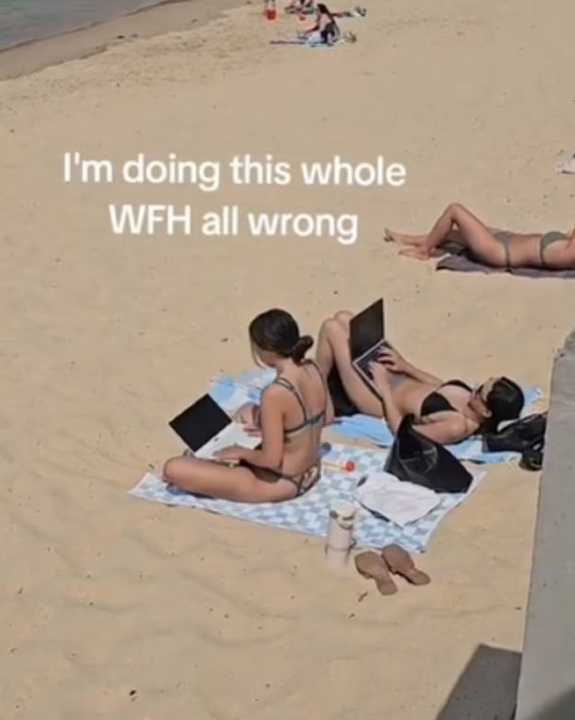 Pitate se kakve to veze ima s bilo čim? Pa ima jer je većina ljudi pretpostavila da ove dve devojke, u stvari, rade od kuće. Možda zvuči komično, imajući u vidu gde je fotografija nastala, ali upravo to i jeste razlog čitave rasprave - činjenica da su one kuću zamenile plažom.