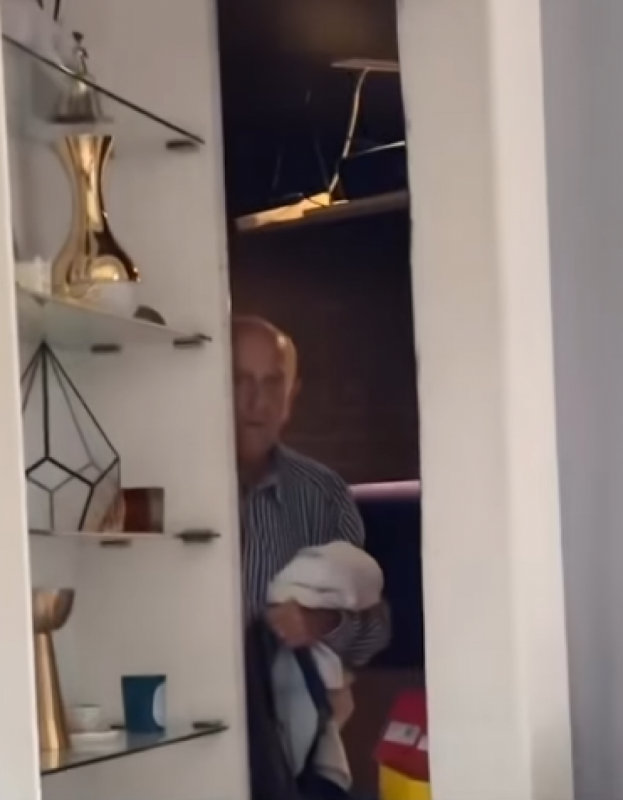 Kako je ispričao, tokom večeri je primetio da se pomera zid sa policom u dnevnoj sobi. Na njegovo zaprepašćenje, iza zida je promolio glavu stariji gospodin samo u košulji i donjem vešu.