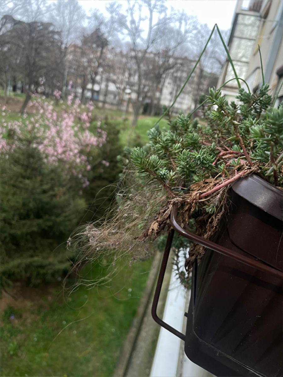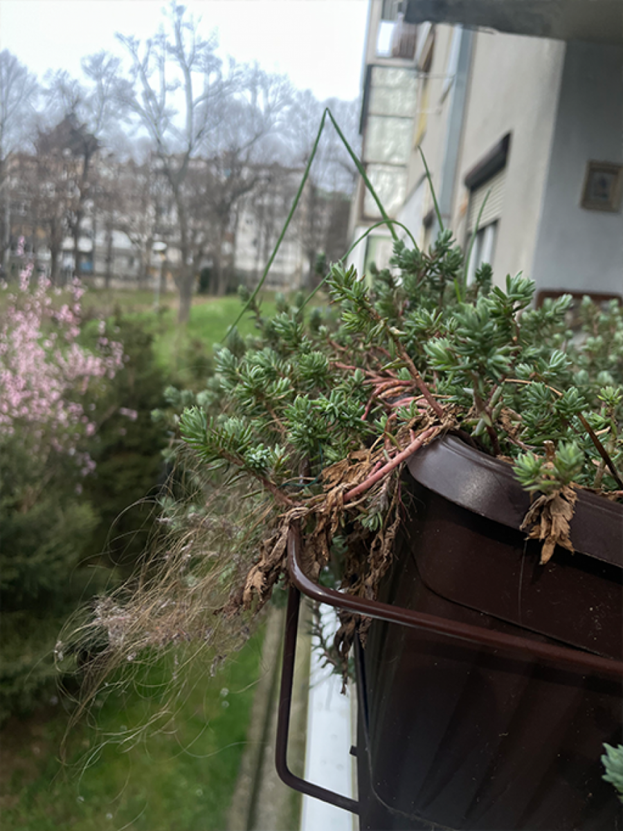 Posadila sam cveće u saksije i kada se naslonim na ogradu, zaista uživam. Kao da živim na Zlatiboru, a ne u Beogradu (tužno je što su toliko slični, ali i je i sreća u neku ruku, ko razume shvatiće). Naravno, ne može sve da bude tako savršeno, ipak živim u betonskoj kutiji okružena ljudima, pa naravno, neko od silnih komšija mora da pravi neki haos.