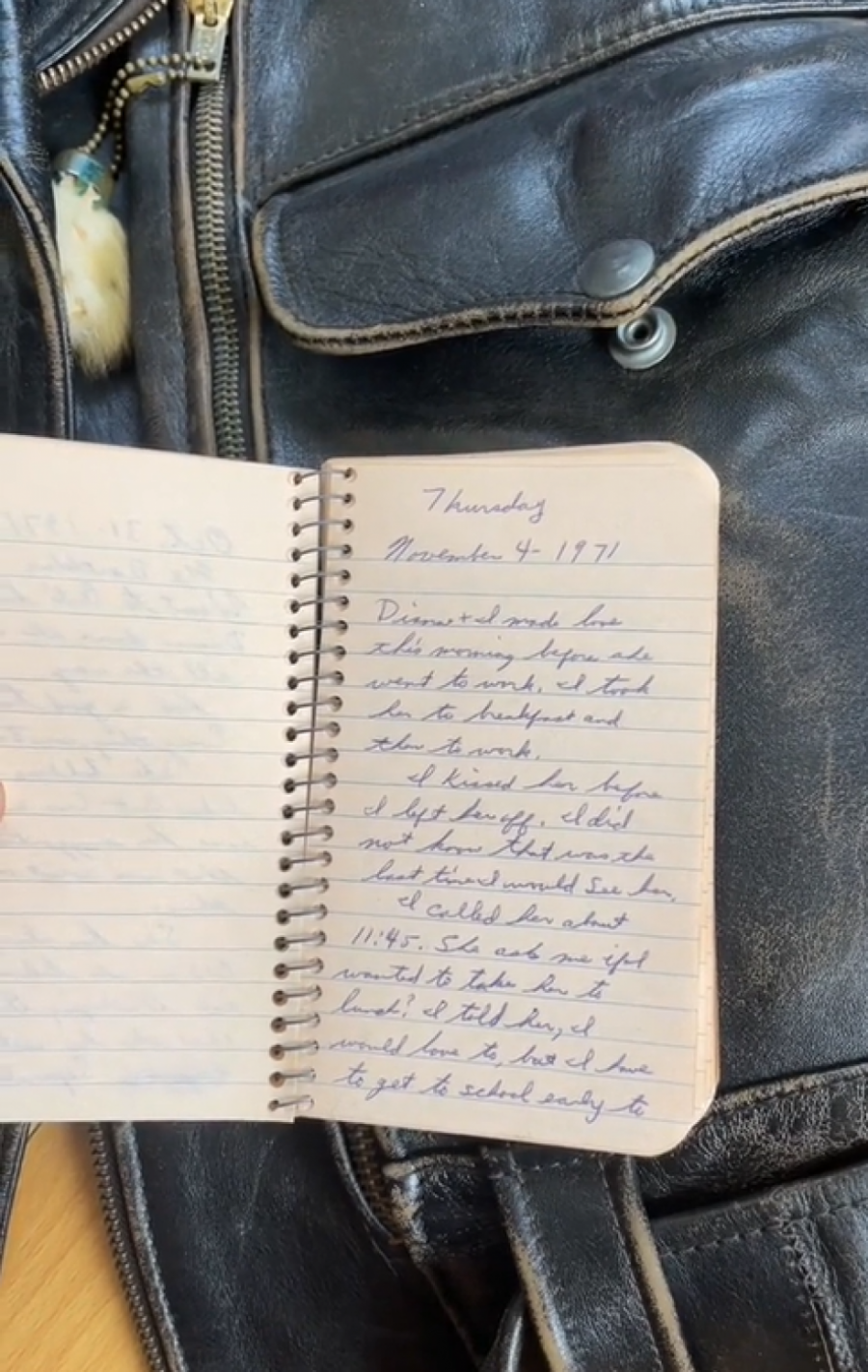 Prvo je izvadila dnevnik, koji je otvorila na prvoj stranici. Tamo je zatekla zapis iz 1971. godine: "Četvrtak, 11. novembar 1971. – Prošla je nedelja dana, a Dajen me nije nazvala ili pisala." Sledeći zapis datira od 22. novembra 1971. godine: "Danas bi bila naša 9. godišnjica i 10 godina zajedno, napio sam se sam."