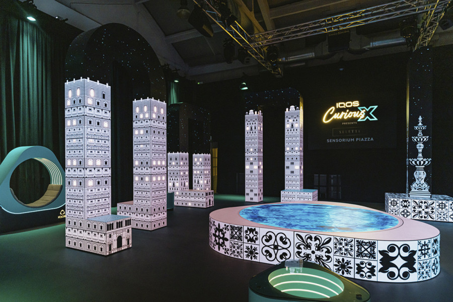 "Curious X: Sensorium Piazza“ je naziv instalacije, smeli moderni prikaz tradicionalnog italijanskog trga, prostora za sva čula u kom se ljudi sreću, razgovaraju i povezuju. Instalacija prenosi fizički svet u neočekivanu digitalnu dimenziju gde se prepliću umetnost i tehnologija kako bi podstakle interakcije.
