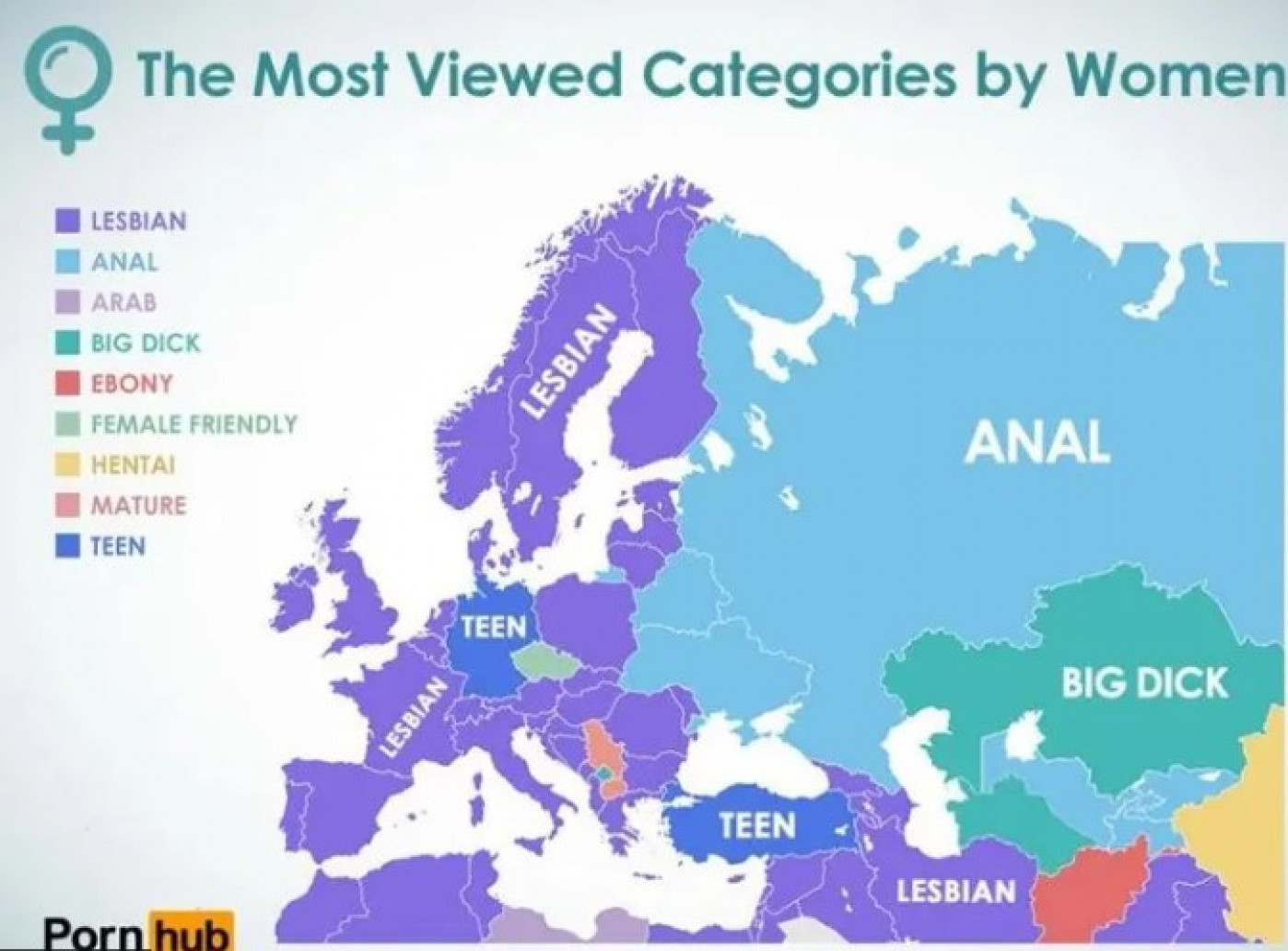 Sudeći prema dobijenim podacima, koji su i grafički prikazani na karti, Hrvatice, Bosanke, Crnogorke, Slovenke i Mađarice imaju isti ukus kada je u pitanju gledanje erotskog sadržaja. Njih najviše privlače filmovi u kojima dominiraju lezbijke, što je poprilično iznenađujuće, ali verovatno i razočaravajuće za muški deo tih nacija. Ipak, vruću akciju dve ili više žene očigledno vole da gledaju pripadnice skoro svih naroda u Evropi.