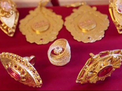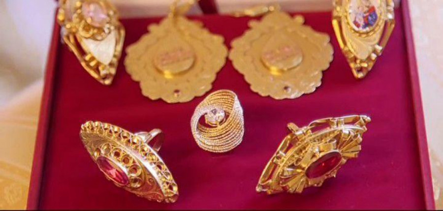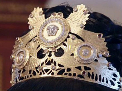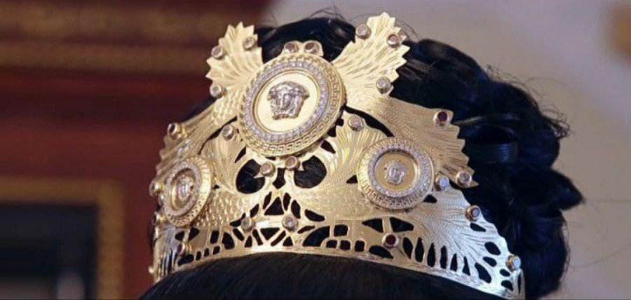 Deo propratnog aksesoara su i masivne Bulgari burme, dok se na početku vidi čin veridbe ogromnim zlatnim prstenjem sa crvenim rubinima. Mlada ima i pravu zlatnu krunu, dok pozlaćeni detalji nisu izostali ni sa sandala. Ona se više puta i presvlačila u luksuzne večernje haljine po kojima su prošiveni cirkoni, a mladoženja ju je u stopu pratio promenom stajlinga.
