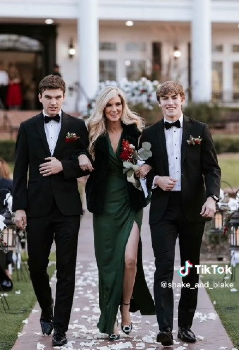 Dok je devojka u videu odmahivala glavom uz konstataciju: "kada je tvoje venčanje, ali mama ti izgleda ovako", smenjivale su se fotografije zanosne plavuše s talasastom kosom i vitkom figurom koja je na venčanju nosila zelenu dugačku haljinu s dubokim izrezom na levoj nozi. Stajling je upotpunila krznenom jaknicom i ušetala pred svatove u pratnji sinova i muža. Sve je ostavila bez teksta.