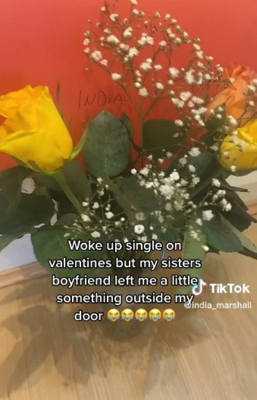 India Maršal je Tiktokerka koja je upravo jedna od takvih singl devojaka, međutim, ona je tokom jučerašnjeg dana doživela pravi šok zbog nečega što ju je dočekalo pred vratima. Naime, niotkuda se nije odjednom pojavio nikakav momak, niti bivši, već je India svoj poklon za Dan zaljubljenih, u vidu korpe s cvećem i porukom, dobila od, ni manje ni više nego od zeta, to jest sestrinog muža.