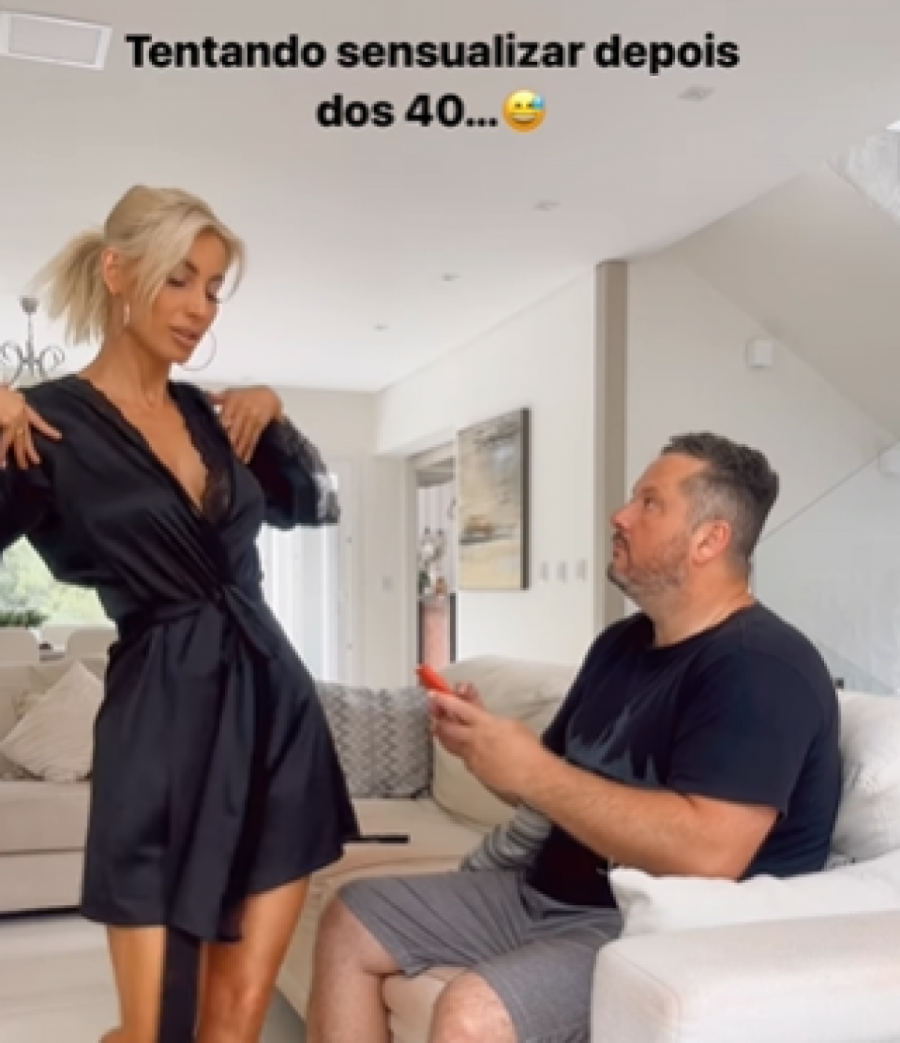 Njen suprug se očigledno tom scenariju nije nadao jer je opušteno sedeo na kauču u majici za spavanje i šortsu, a onda je odjednom primetio da je supruga počela da ga zavodi senzualnim plesom. Istog trenutka kada je shvatio o čemu se radi ostavio je telefon po strani, a očigledno je bio toliko srećan što će, kako je očekivao, završiti sa njom u krevetu da je od oduševljenja počeo da tapše poput deteta.