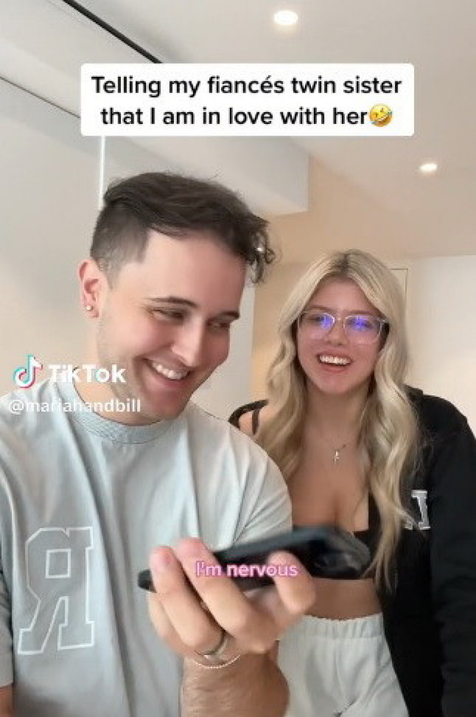 Mariju i Bila na TikTok mreži prati 16,1 milion korisnika i interesantan su par zbog toga što svakodnevno svoje pratioce iznenađuju novim interesantnim sadržajima u čemu su veoma kreativni. U nizu svojih neverovatnih ideja i situacija koje dele sa svima, objavili su i jedan video u kom su odlučili da se malo našale sa Bilovom svastikom, to jest Marijinom sestrom bliznakinjom, Meg. Naime, želeli su da vide kakva će biti njena reakcija nakon što joj on prizna da je u stvari zaljubljen u nju.
