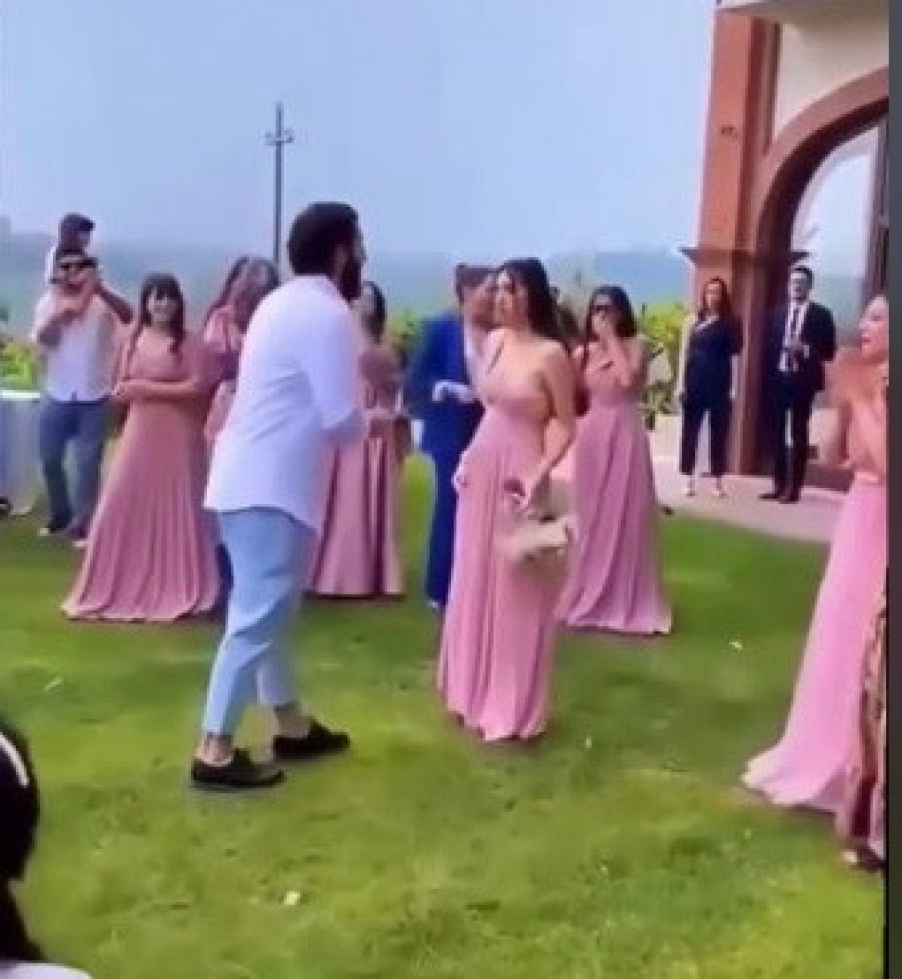 Nakon što je potrčao kada je uzeo bidermajer, uručio ga je svojoj devojci koja je stajala sa ostalim devojkama iza i kleknuo je sa prstenom u ruci kako bi je zaprosio. Devojka je ostala u potpunom šoku i zatečena kao i većina gostiju kojima je bilo drago da prisustvuju ovakvom jednom događaju pa su neki uzeli telefon i snimali.